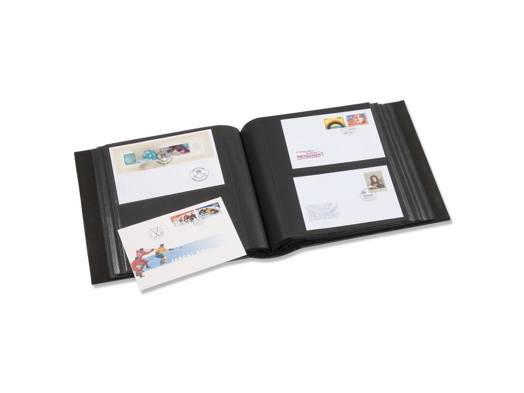 Album zn. Leuchtturm s 50 oboustrannými dvoukapsovými listy z polypropylenu pro uložení až 200 pohlednic nebo dopisů.