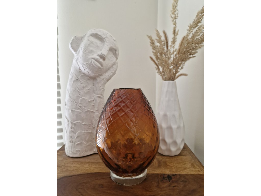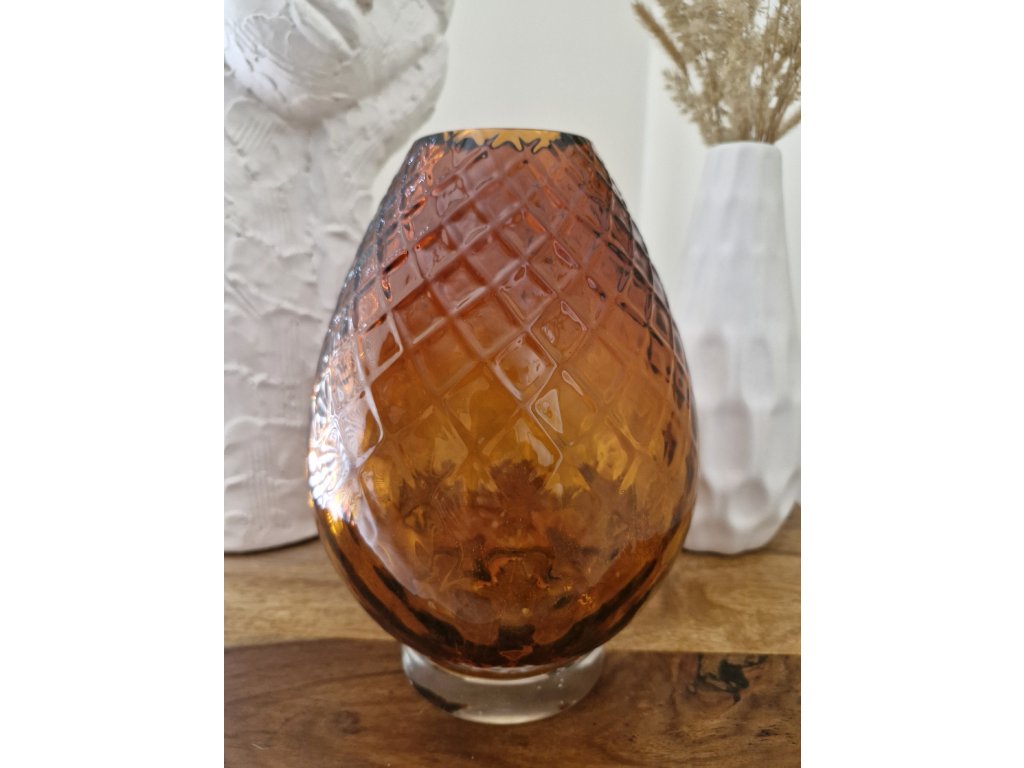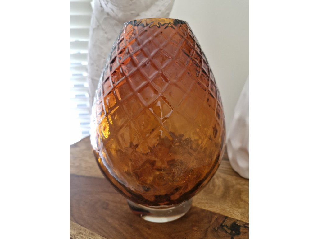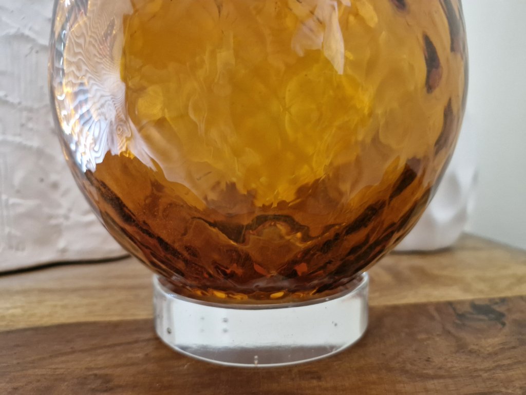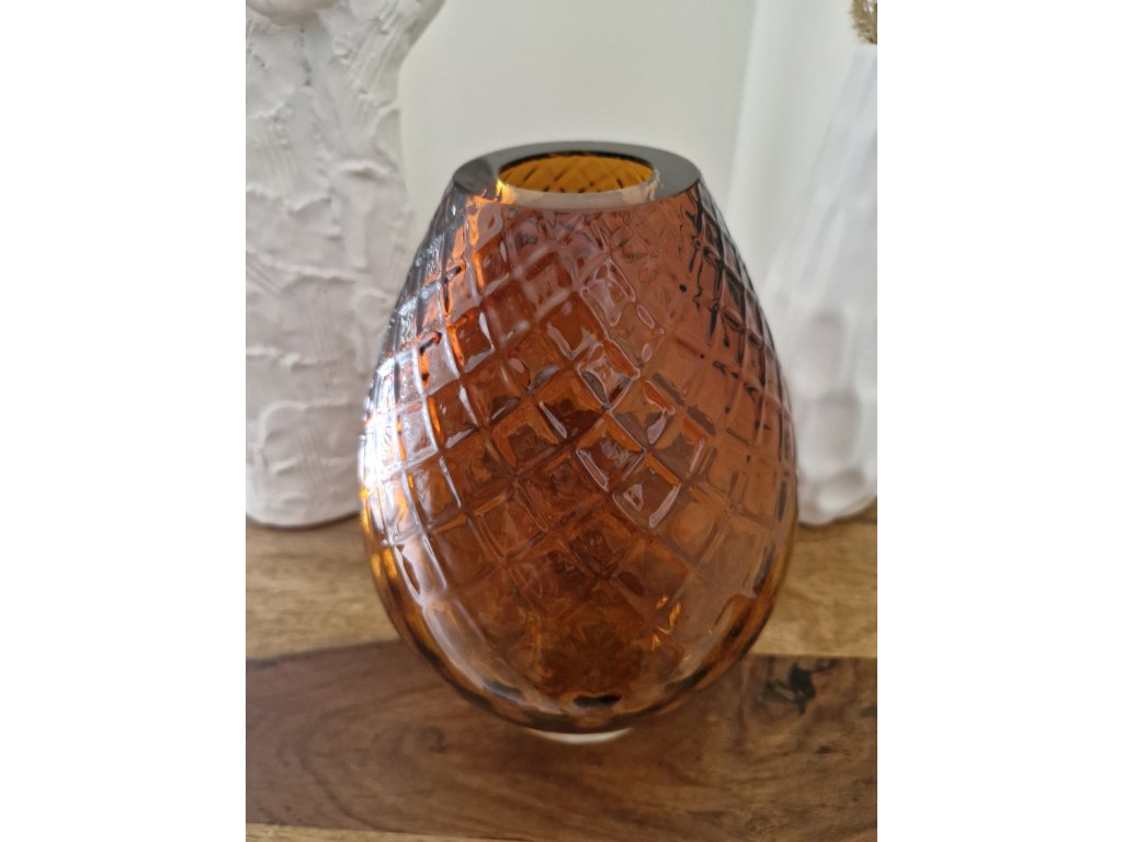 Luxusní váza z foukaného skla v krásné ambrové barvě s diagonálním šrafováním dle autorského návrhu Aleše Vlanera, sklárna Art Glass PRINC, Žďár nad Sázavou, 90. léta 20. století. Výška 23 cm. Top stav.