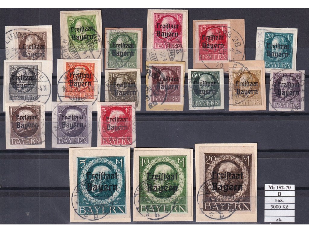 Bayern Mi 152-70 B razítkované zkoušené (vyjma levných hodnot 40 Pf a 60 Pf).