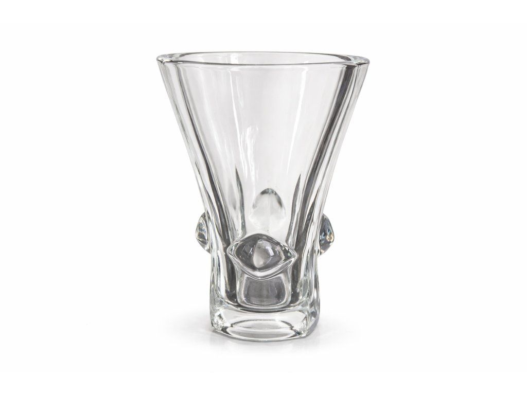 Krásná váza z čirého lisovaného skla dle autorského návrhu Vladislava Urbana, sklárna Rosice, r. 1962. Výška 20 cm. Top stav.