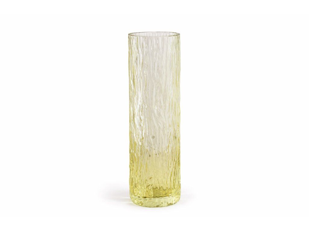 Krásná citrínová váza z lisovaného skla - tzv. sukáč, návrh Václav Hanuš, sklárna Desná, 60. léta 20. století. Výška 24 cm. 100% TOP stav.