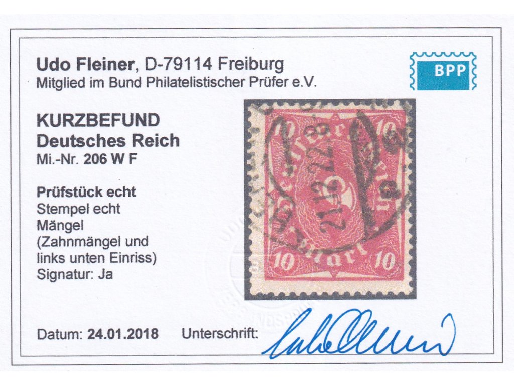 Deutsches Reich Mi 206 WF KB 2 kvalita razítkované