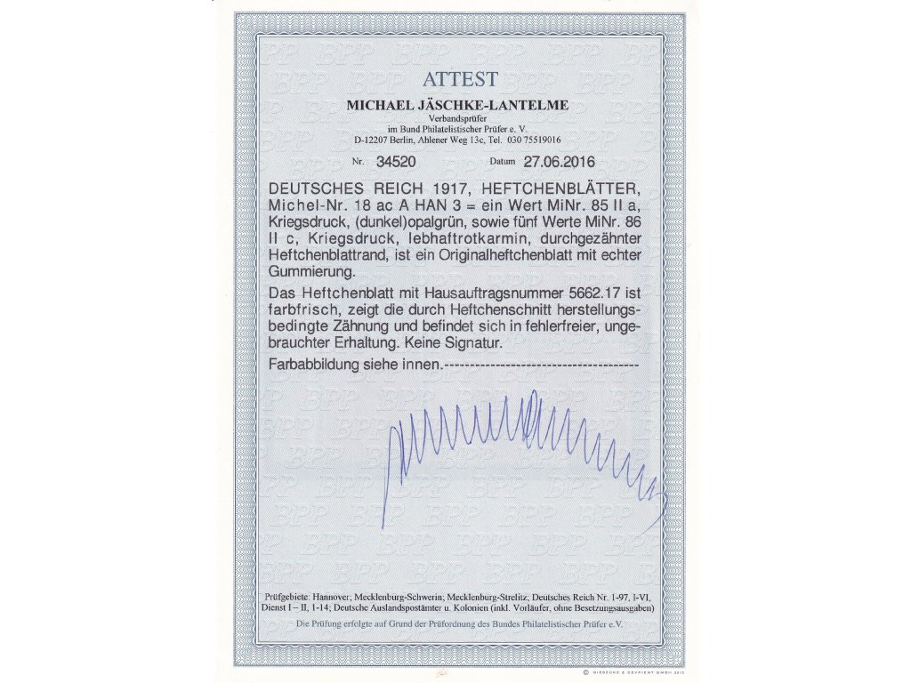 Deutsches Reich Mi HBL 18 acA HAN3 po nálepce Attest
