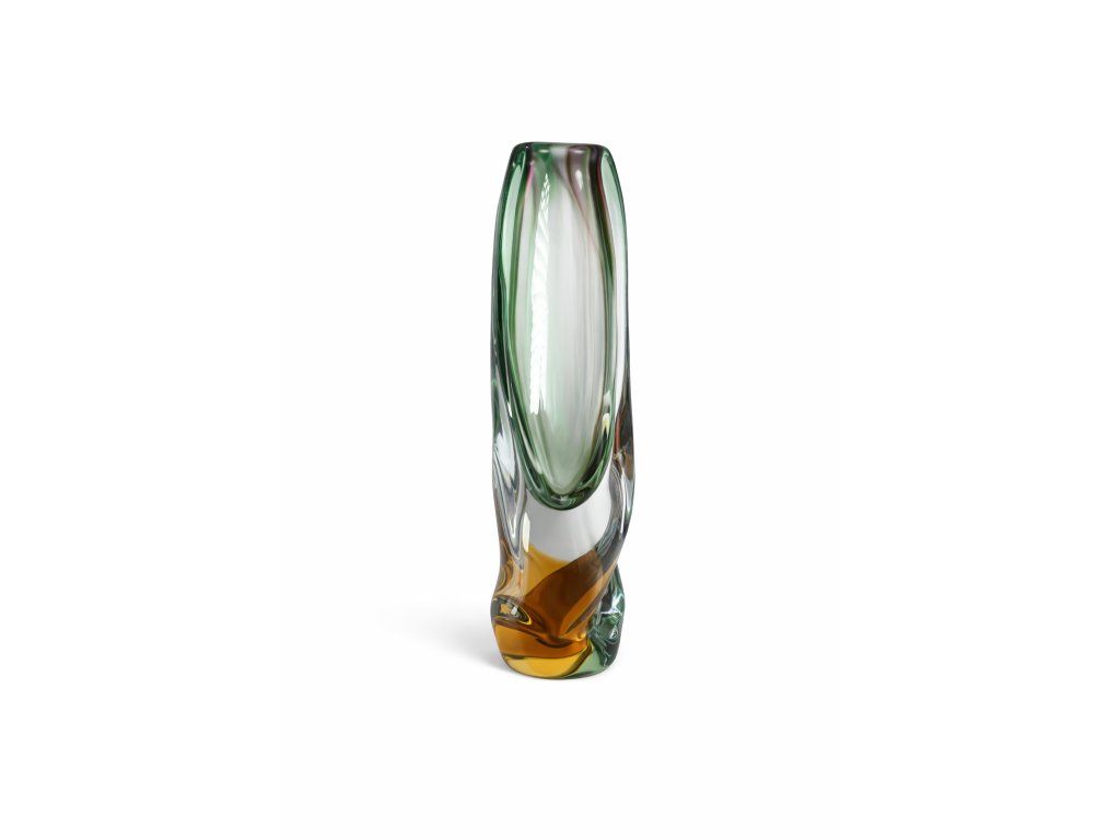 Krásná duhová váza z hutního skla dle autorského návrhu Josefa Rozínka, skloárna Nový Bor, 60. léta 20. století. Výška 26 cm. 100% TOP stav.