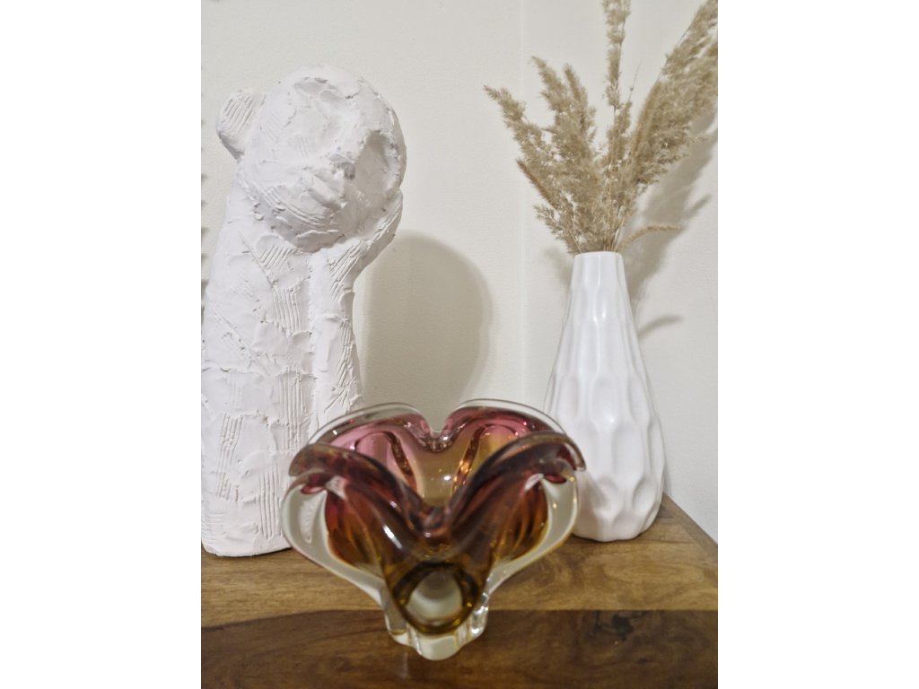 Krásná masivní mísa z hutního skla v růžovo oranžové barevné kombinaci. Autor návrhu Josef Hospodka, sklárna Chřibská, 60. léta 20. století. Výška 12 cm, průměr 19 cm. Top stav.