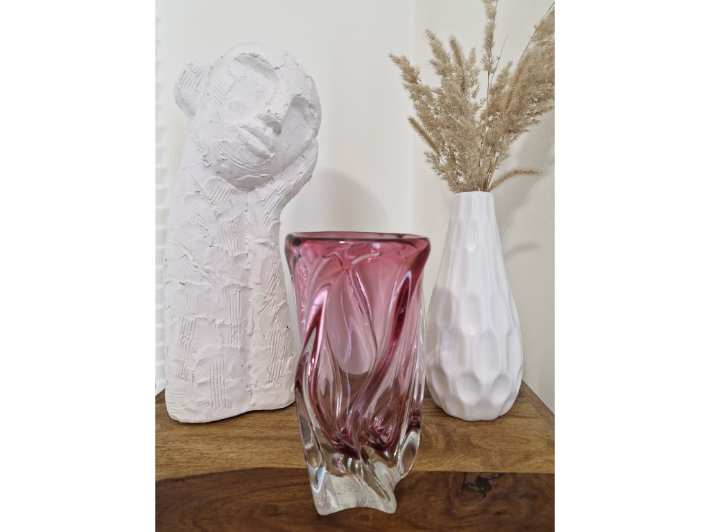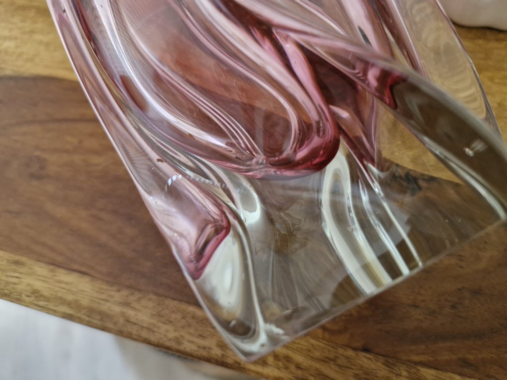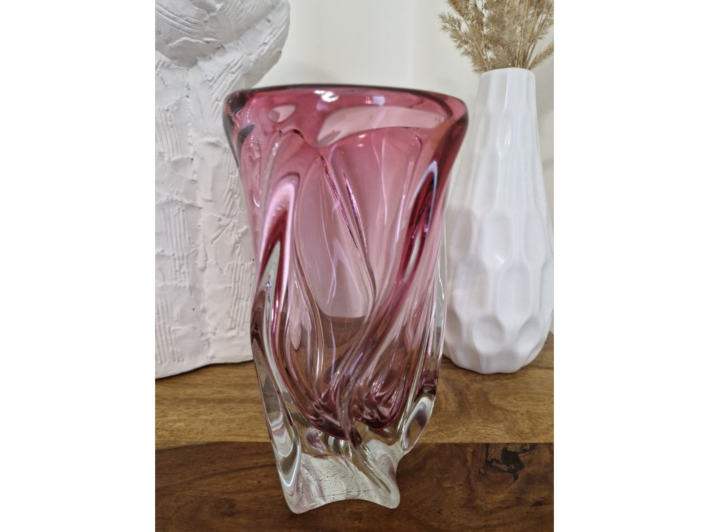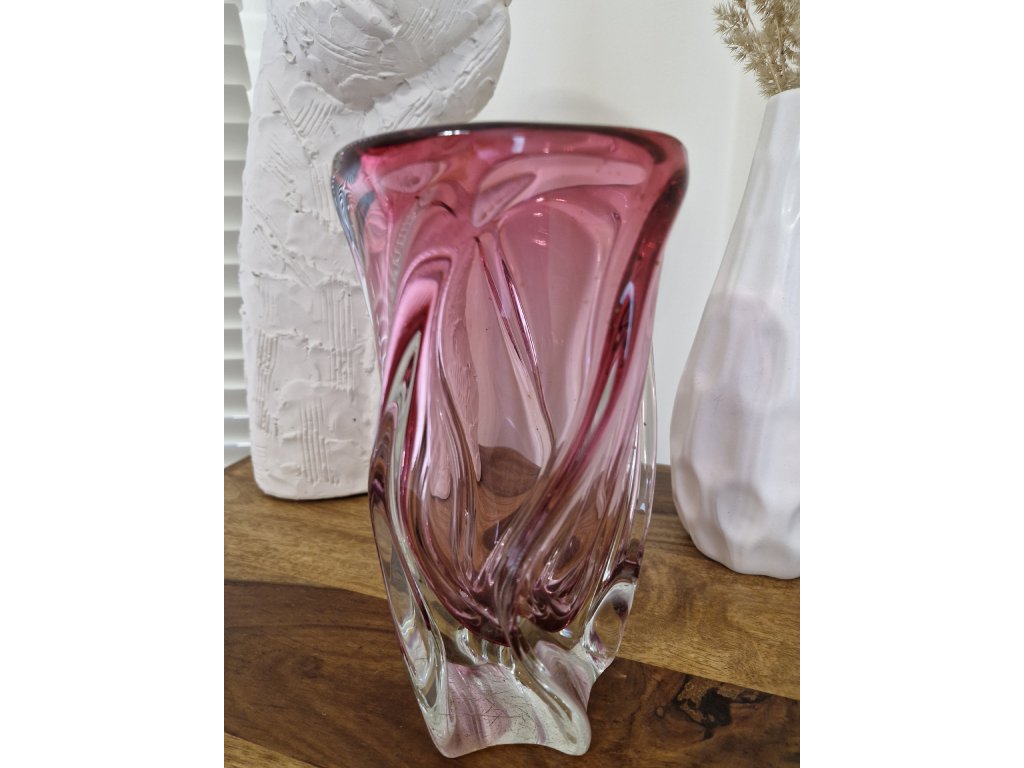 Nádherná váza z hutního skla ve tvaru vrtule s jemnými liniemi. Autor návrhu Josef Hospodka, sklárna Chřibská, 60. léta 20. století. Výška 20 cm. Na jedné hraně podstavy zanedbatelný mini oťuk, jinak top stav.