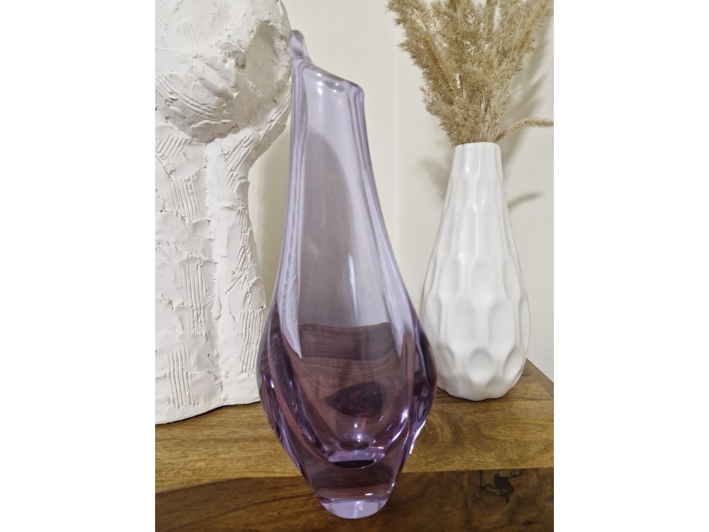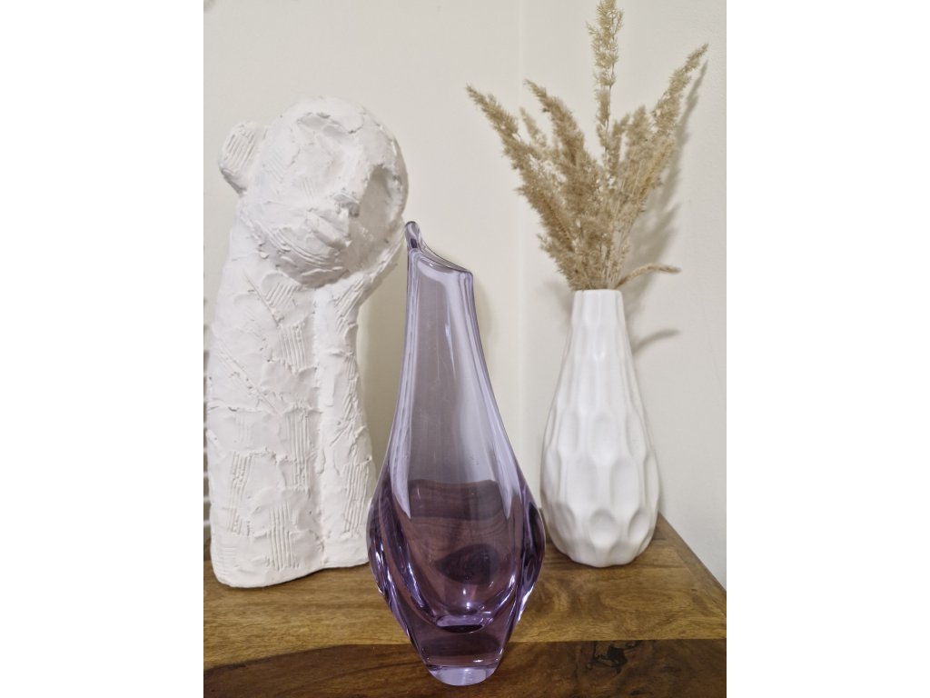 Krásná, jemná váza z hutního skla v alexandritovém provedení. Autor návrhu Miloslav Klinger, sklárna ŽBS, 60. léta 20. století. Výška 27 cm. Top stav.
