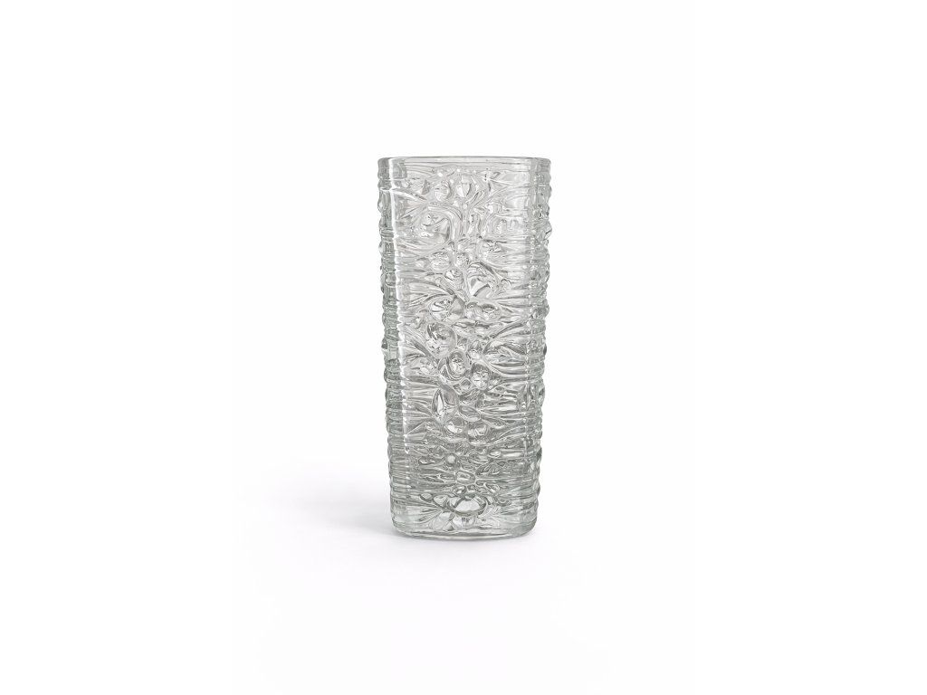 Krásná váza z lisovaného skla dle autorského návrhu Františka Pečeného, sklárna Heřmanova huť, r. 1968. Výška 21 cm. Top stav.