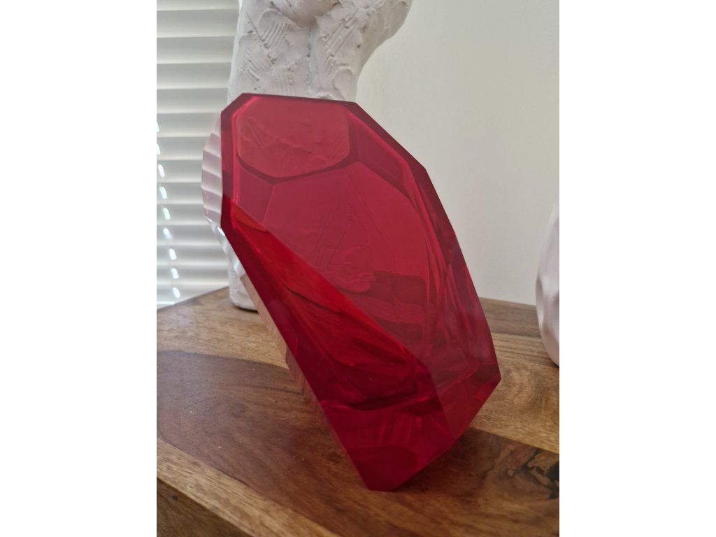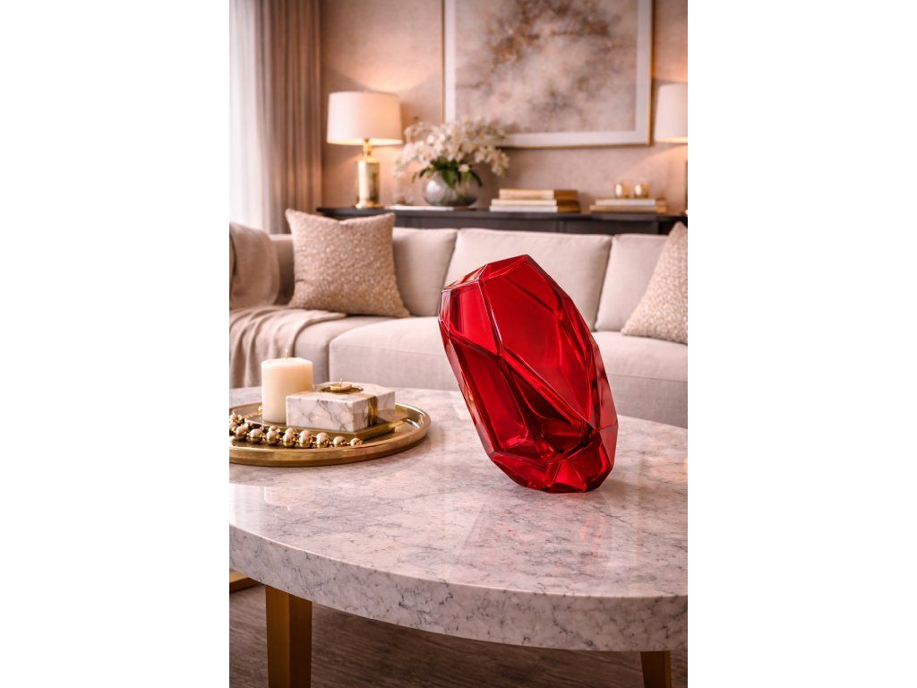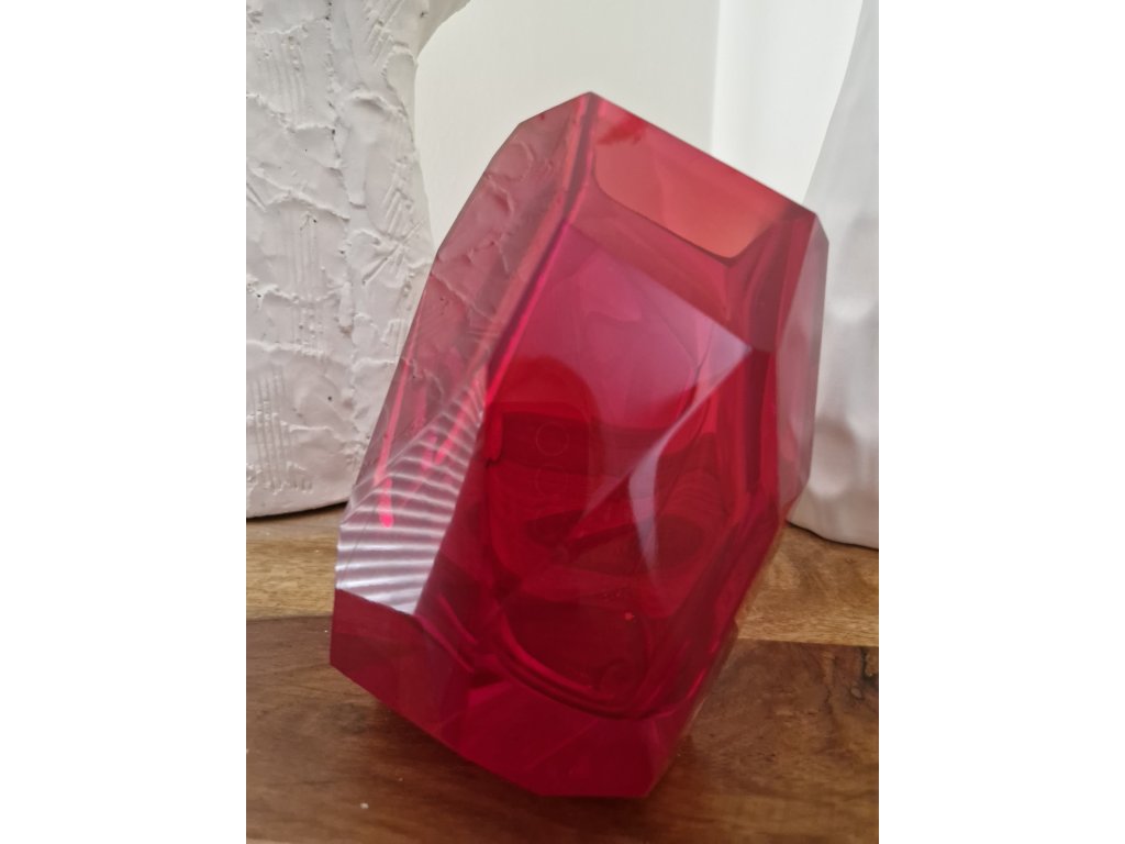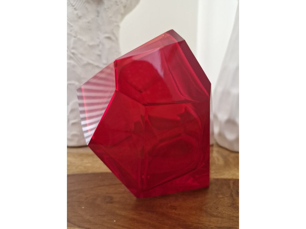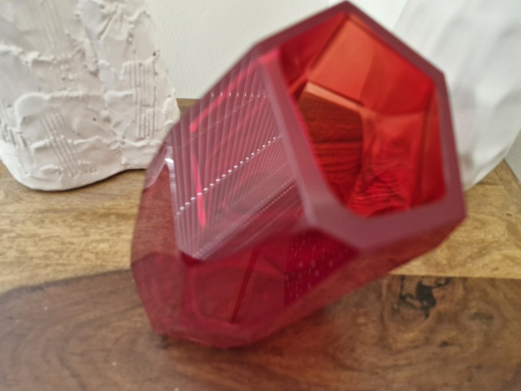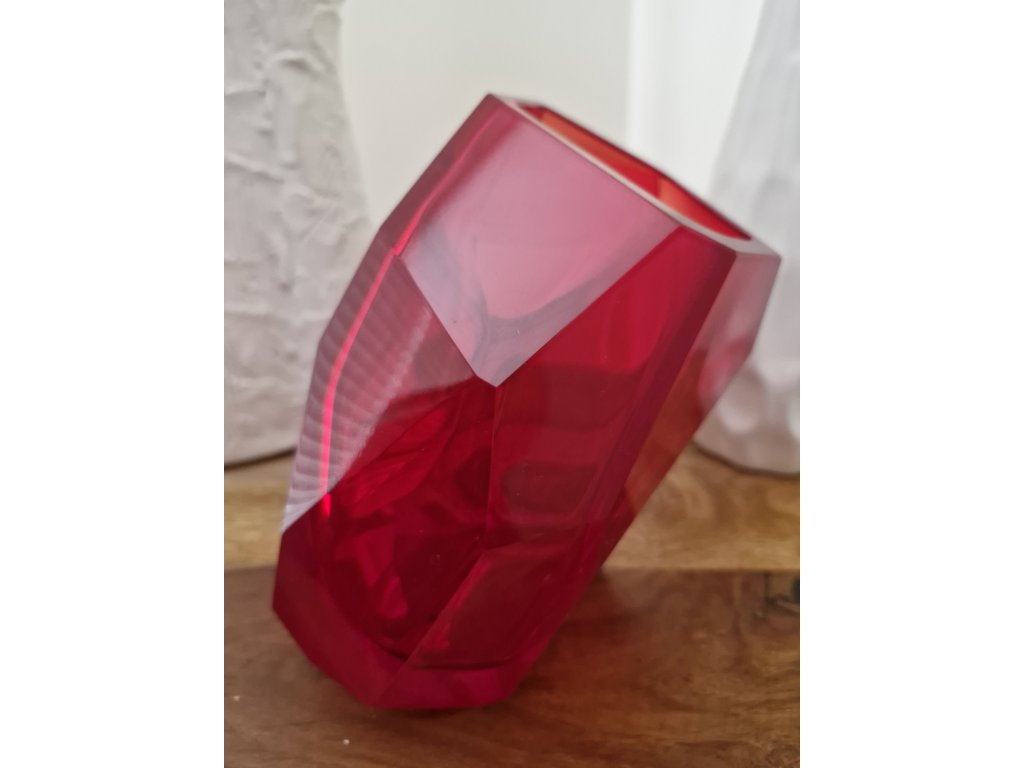 Exkluzivní ručně foukaná hranovaná váza s nakloněnou rovinou. Designerský návrh uznávaného izraelského sklářského dizajnéra Arika Levyho. Nádherná silueta broušená do velkých ploch, které dají vyniknout konečnému tvaru této nádherné vázy. Výška 16 cm. 100% TOP stav nového zboží. Nádherná rubínová barva skloviny dává vyniknout ladným liniím. Produkce neskutečně šikovných sklářů a brusičů sklárny LASVIT Nový Bor.