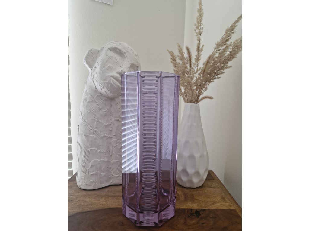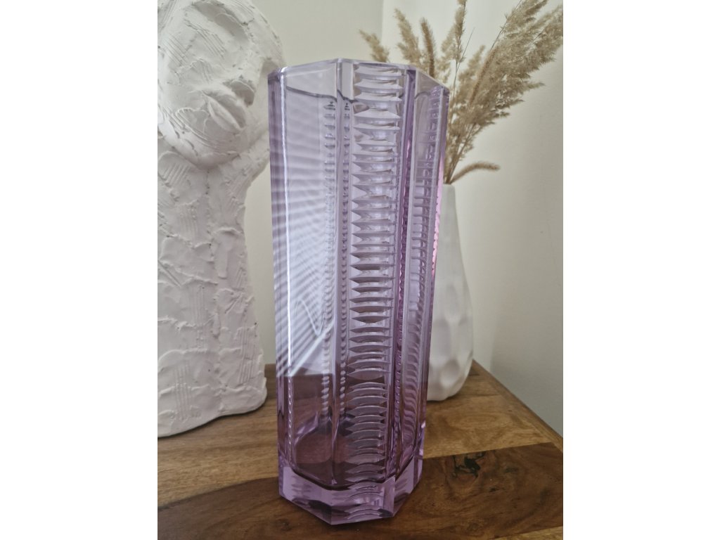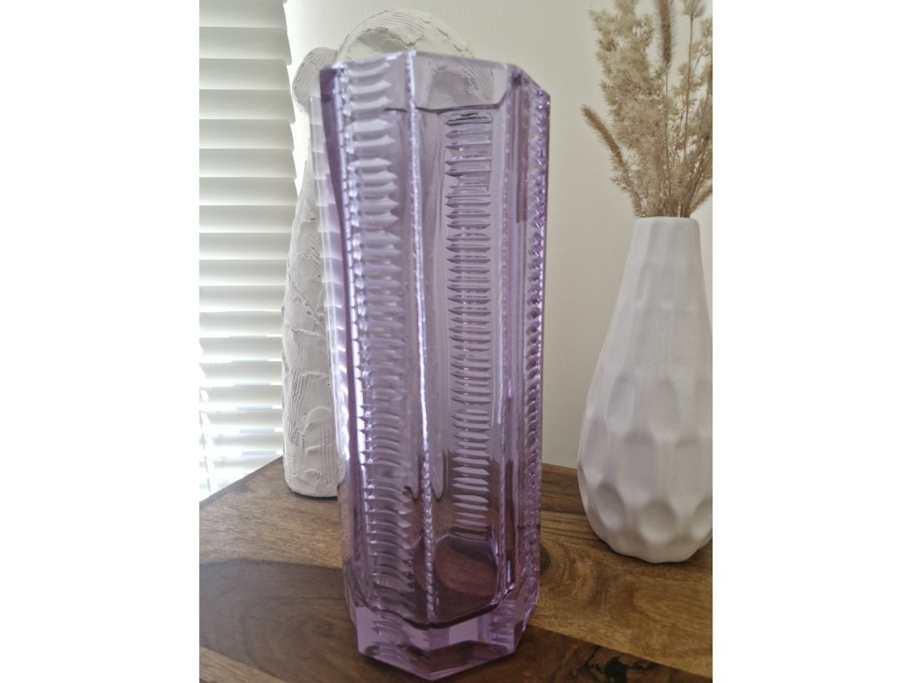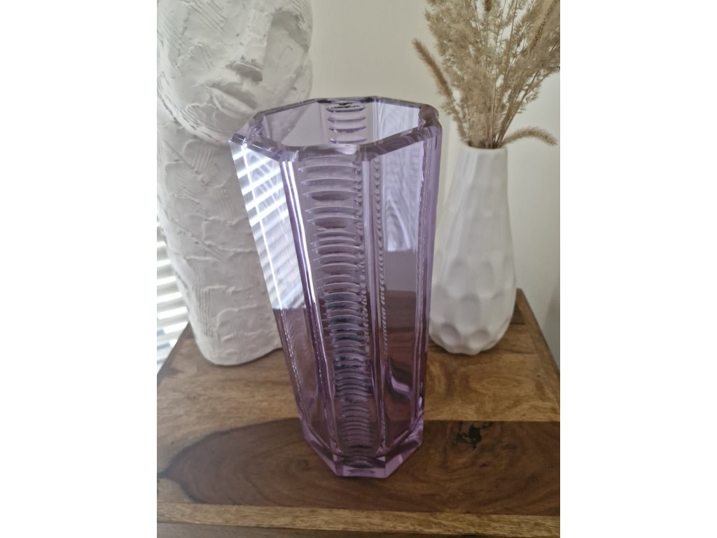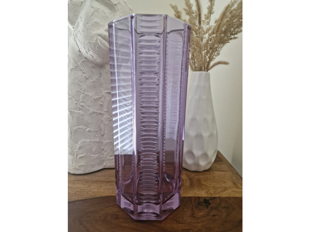 Nádherná, masivní, fazetově broušená váza z alexandritového skla dle autorského návrhu Václava Hanuše, Jablonecké sklárny, r. 1965. Výška 30 cm. Top stav.