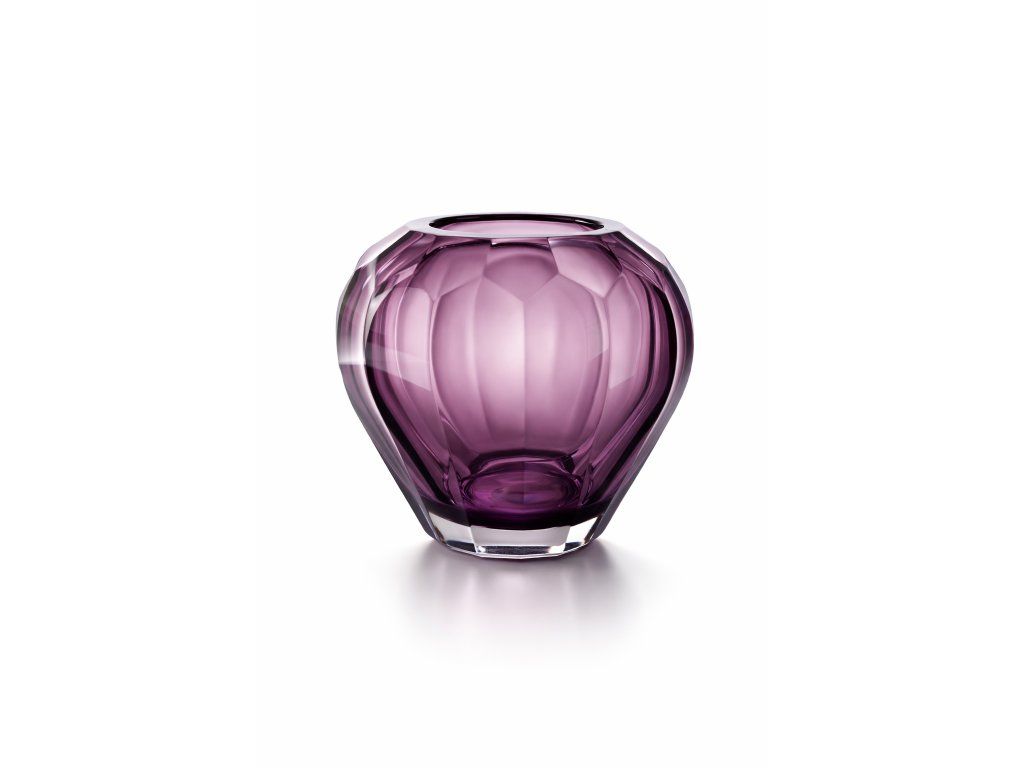 Luxusní váza z alexandritového hutního skla zušlechtěna trojitým kuličským brusem. Z produkce sklárny MOSER, období 1. republiky. Na podstavě značeno. Výška 15 cm, průměr 17 cm. Top stav, pouze na podstavě jemné škrábanečky.