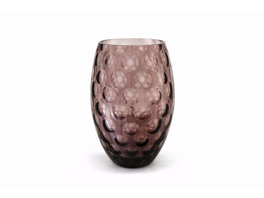 Nádherná fialová váza z foukaného skla s dekorem optických čoček dle autorského návrhu Maxe Kannegiessera, sklárna Borské sklo - kolekce NEMO. Výška 24 cm. Top vitrínový stav.