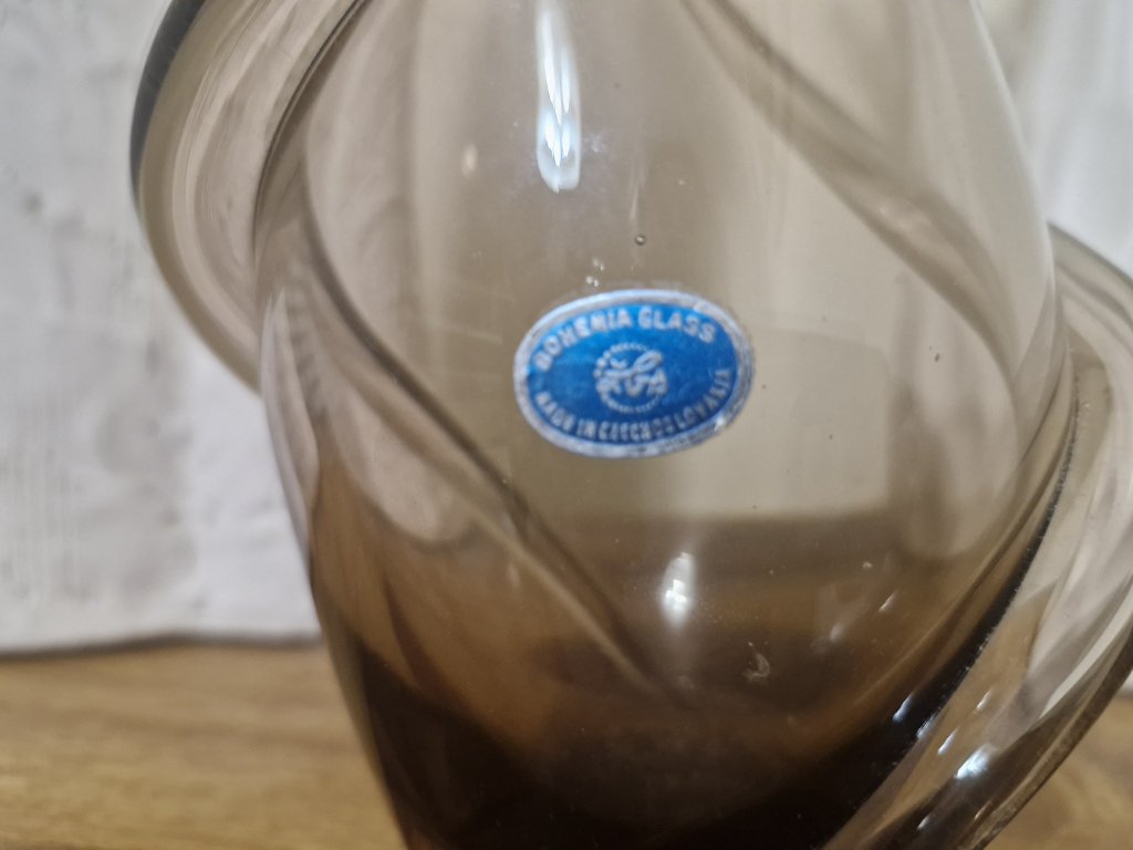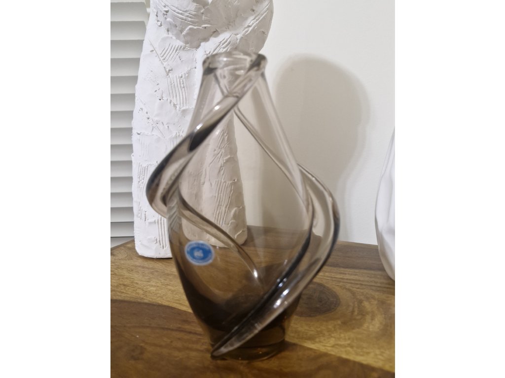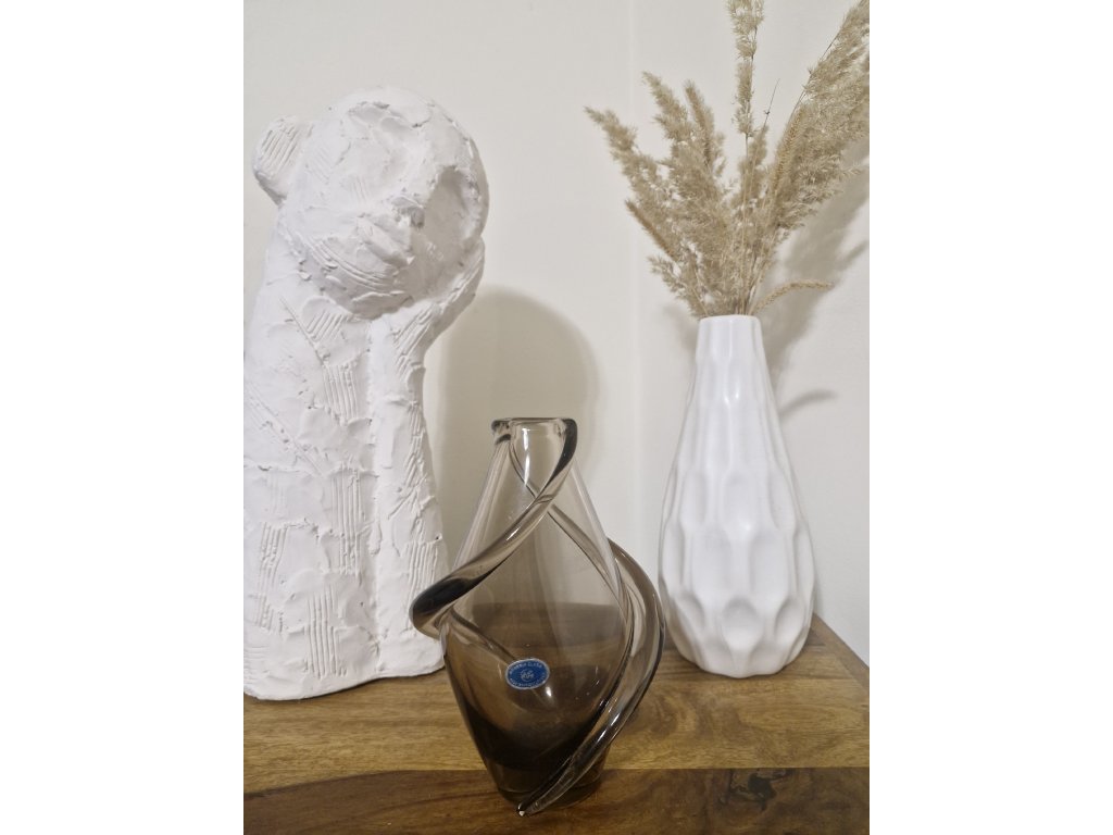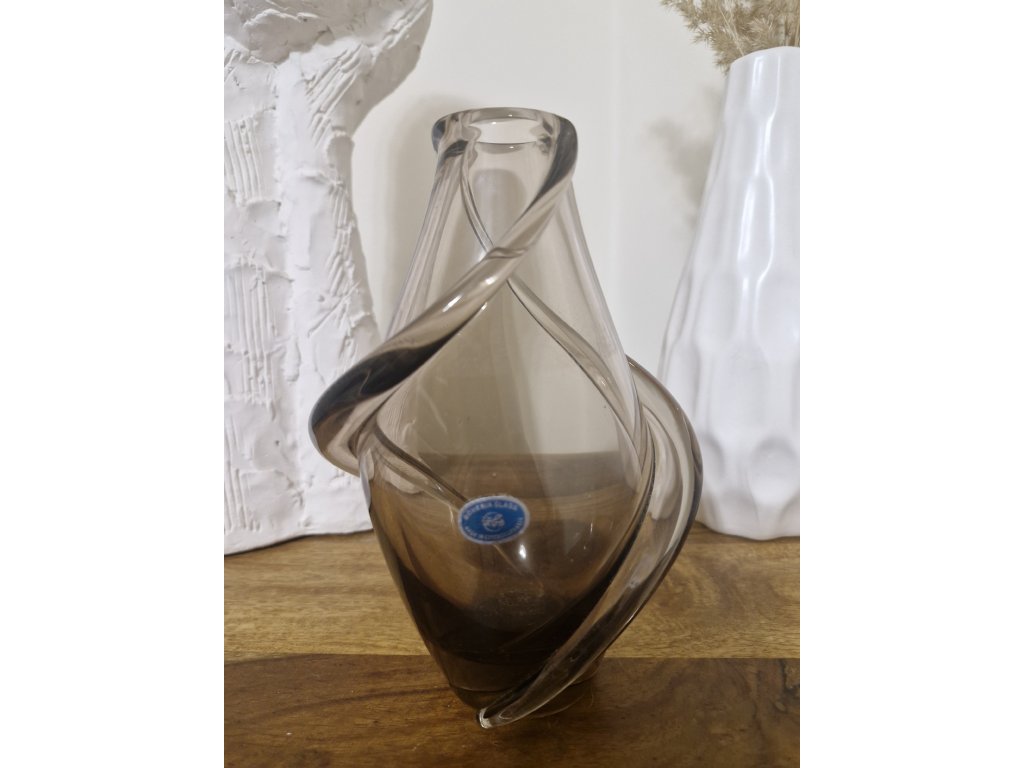 Jemná, elegantní váza z hutního skla dle autorského návrhu Miloslava Klingera, sklárna ŽBS, 60. léta 20. století. Výška 18,5 cm. S původní nálepkou sklárny. Top stav.