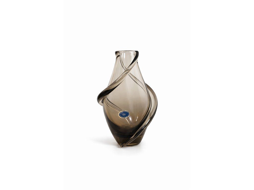 Jemná, elegantní váza z hutního skla s nálepy dle autorského návrhu Miloslava Klingera, sklárna ŽBS, 60. léta 20. století. Výška 18,5 cm. S původní nálepkou sklárny. Top stav.