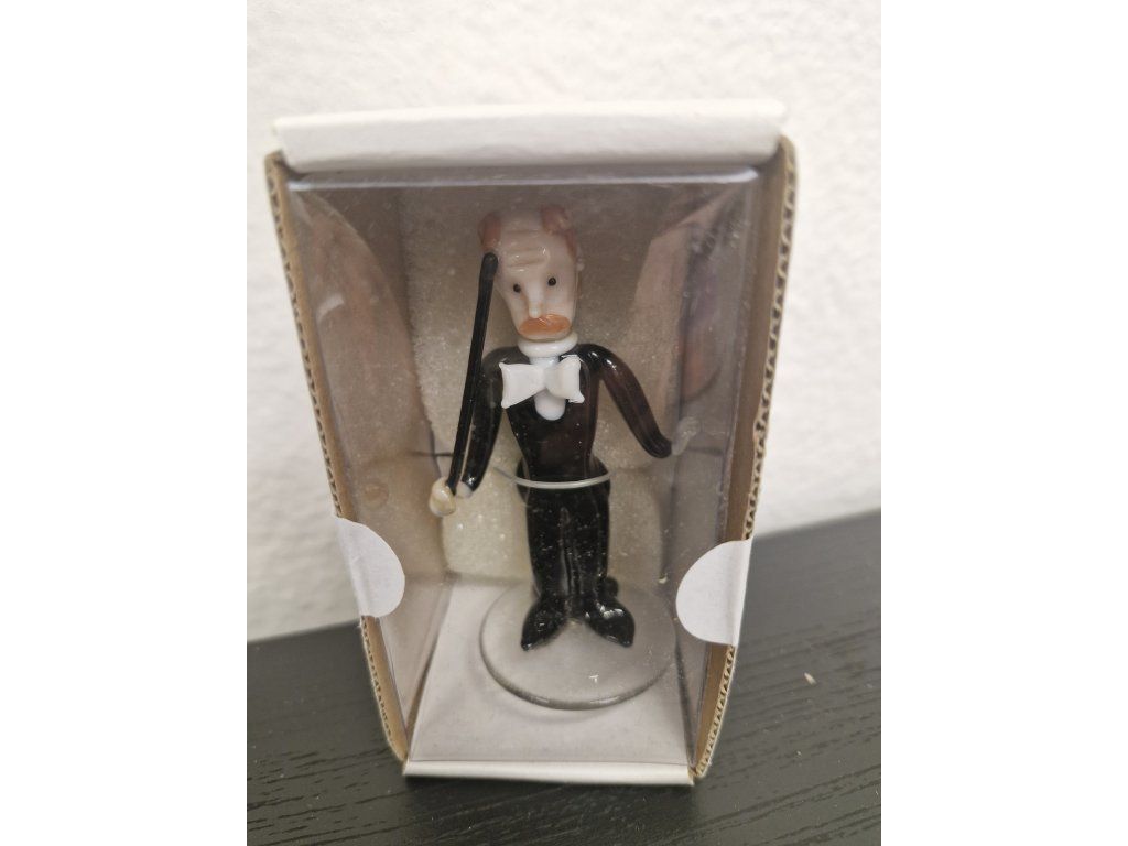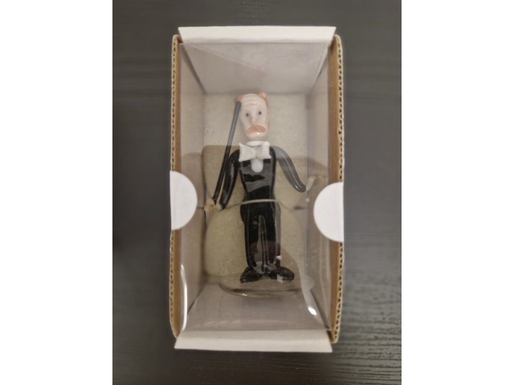 Skleněná figurka dirigenta z foukaného skla. Velmi jemná v detailech, barevné sklo hutně tvarované nad plamenem. Autorský návrh prof. Jaroslav Brychta, sklárna ŽBS, 60. léta 20. století. Výška figurky cca 9 cm. Figurka je v top sběratelském stavu v originální krabičce, která nebyla nikdy otevřená.