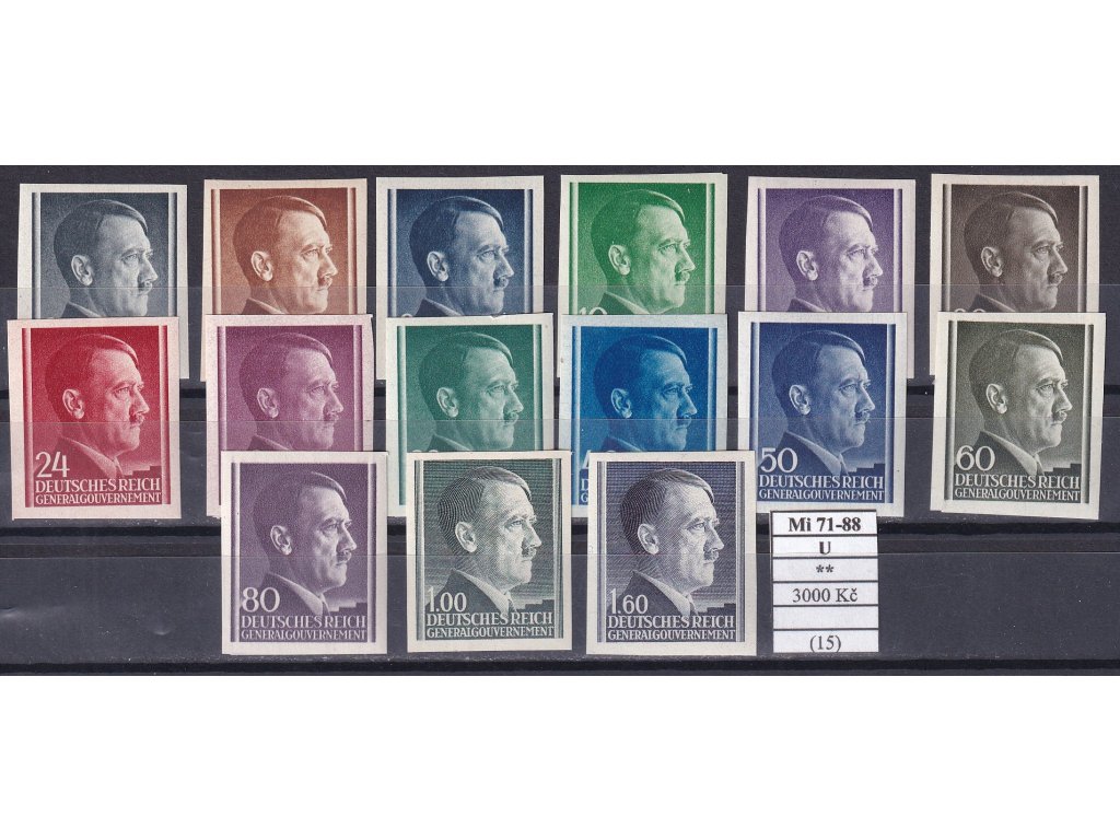 Generalgouvernement Mi 71-88 U svěží (bez Mi 76 U, 82 U a 87 U).