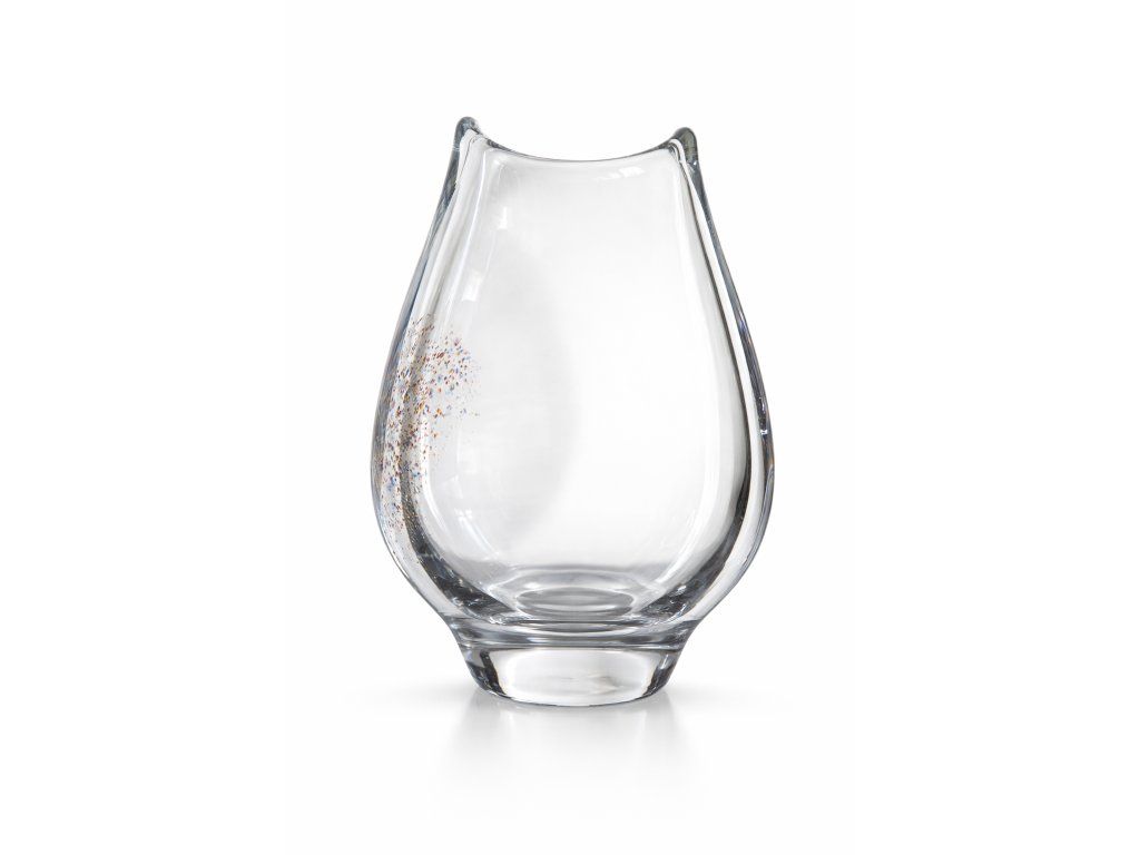 Luxusní, masivní, velmi málo vídaná váza z čirého hutního skla se zataveninou pravděpodobně dle autorského návrhu Rudolfa Višňovského, realizace Karel Vogl, sklárna ŽBS, vzor č. 70367/26. Výška 26 cm. Top stav. Každá jedna váza je originál díky jedinečnému vzoru zataveniny.