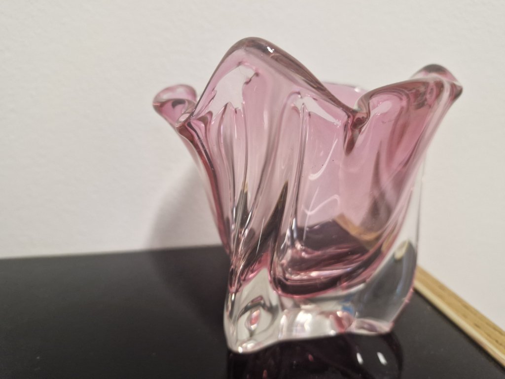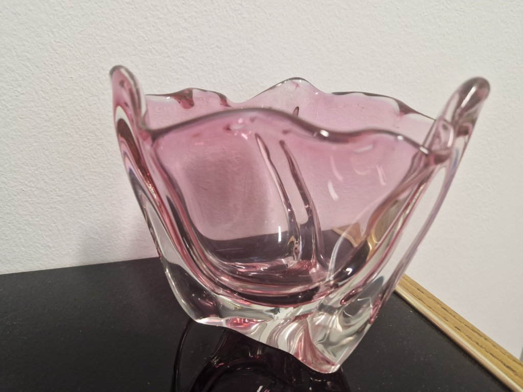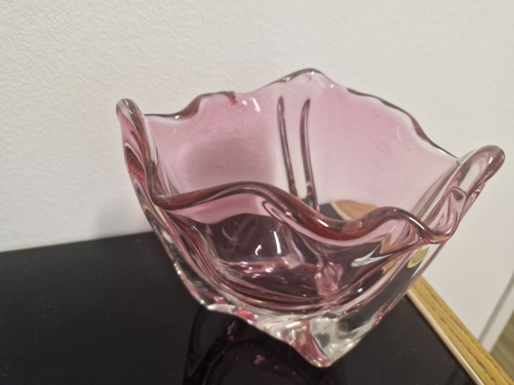 Krásná jemná mísa z hutního skla dle autorského návrhu Josefa Hospodky, sklárna Chřibská, 60. léta 20. století. Výška 13 cm, horní průměr 16 cm. Top stav.