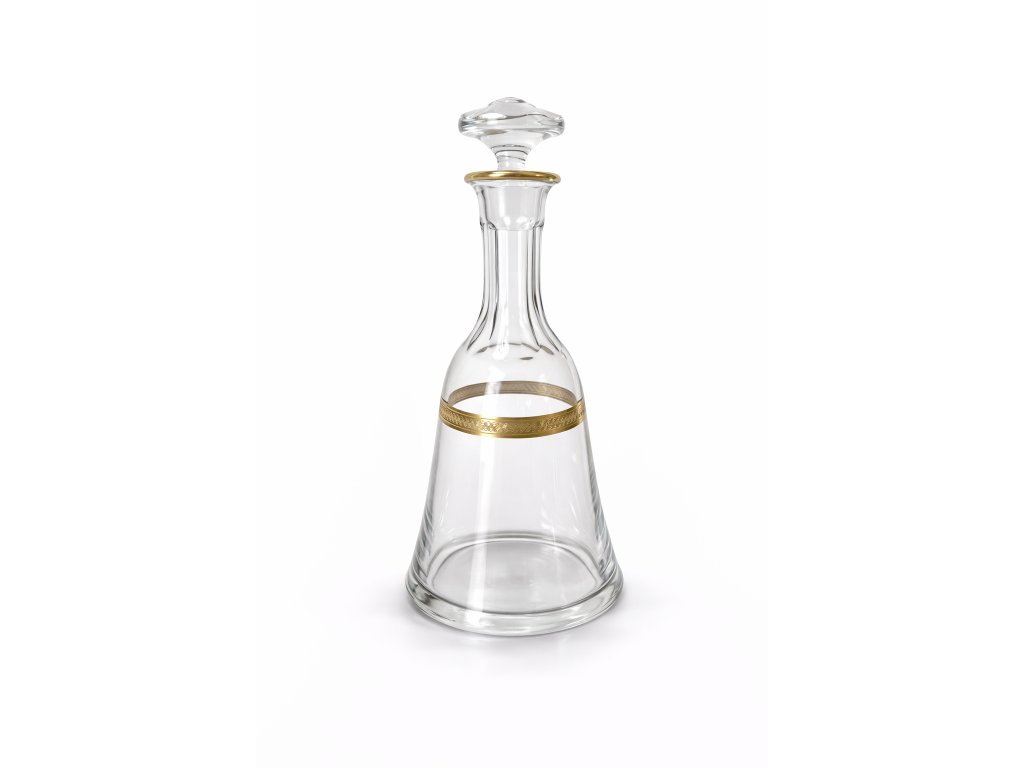 Krásná karafa s broušeným hrdlem, zdobená jemnou oroplastikou z produkce sklárny Květná - kolekce DONNA, 70. léta 20. století. Výška 28 cm. 100% TOP stav.
