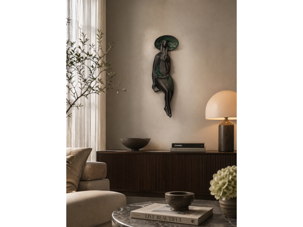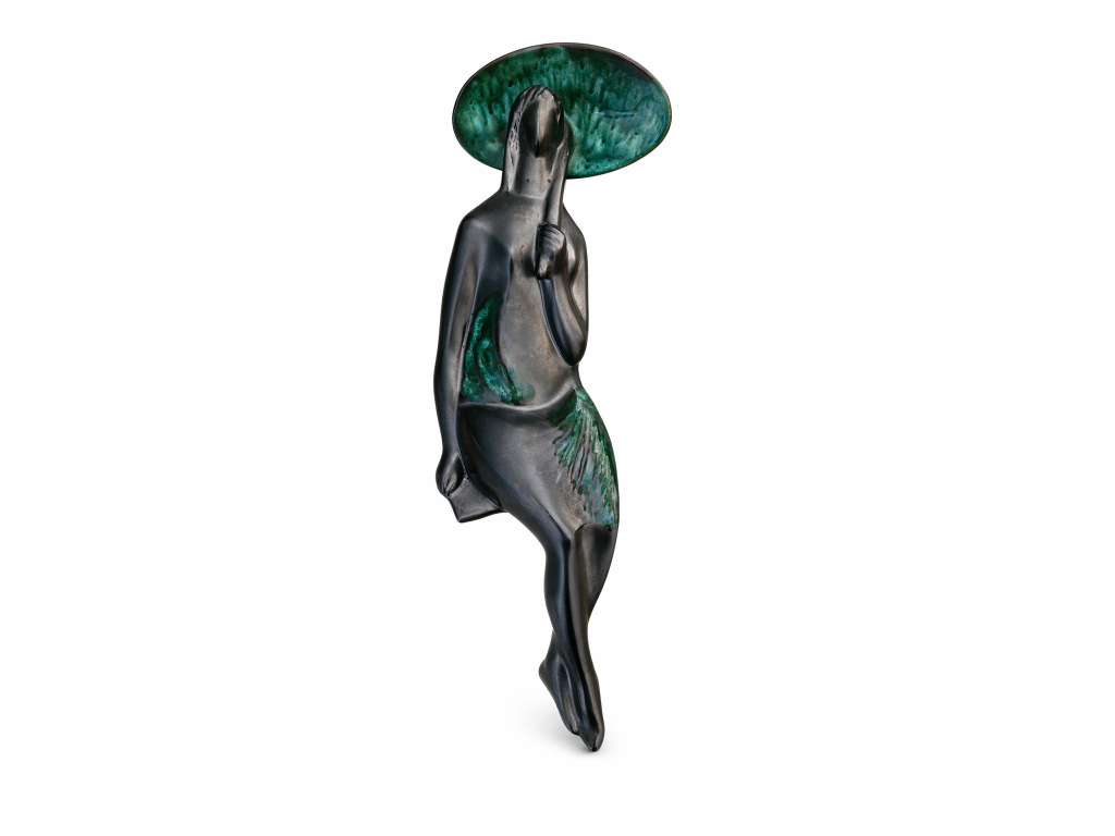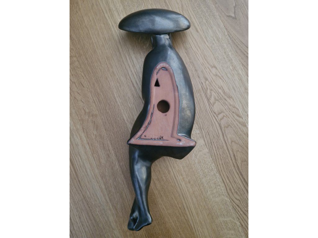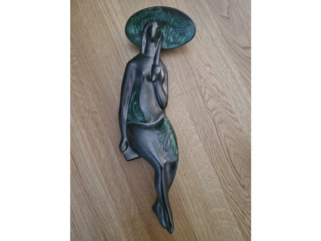 Nádherná glazovaná keramická plastika "Dáma s kloboukem" dle autorského návrhu Jitky Forejtové. Produkce Keramo Praha, 60. léta 20. století. Tzv. bruselský styl. Výška 40 cm. 100% TOP stav. Ideální na zavěšení na zeď.