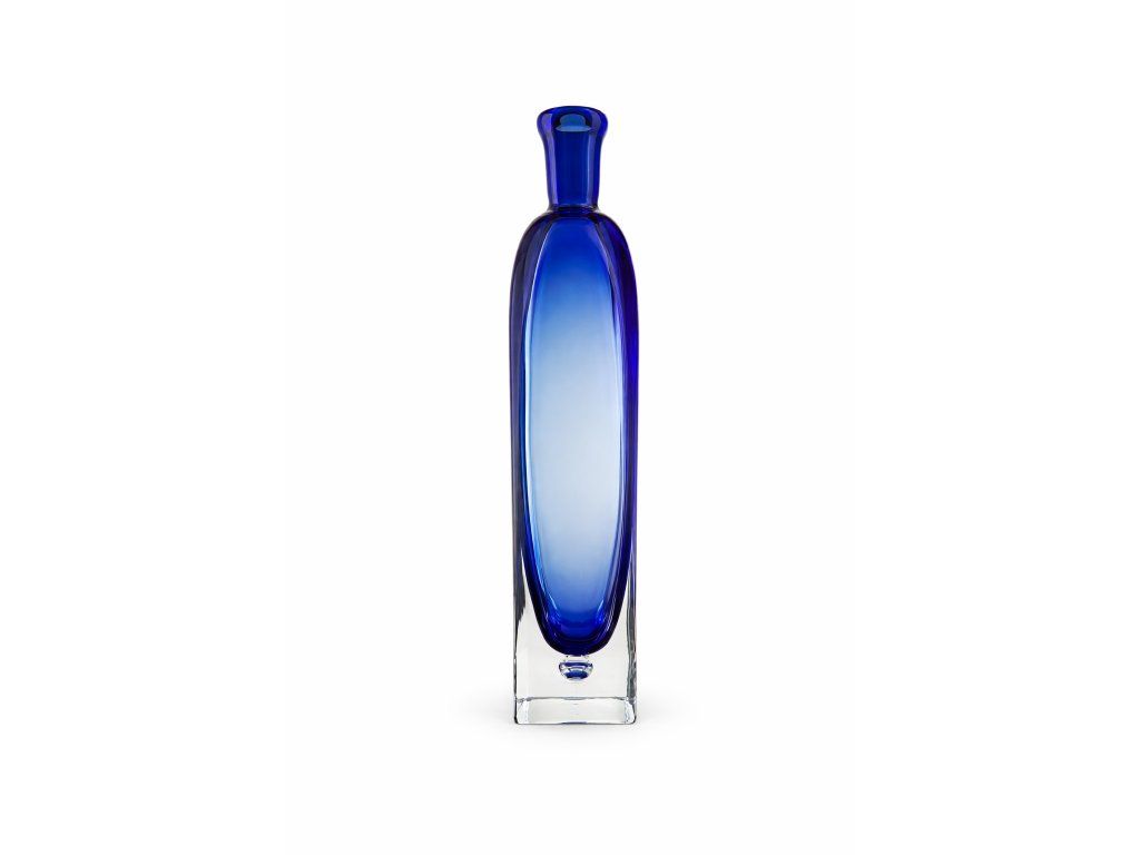 Nádherná masivní kobaltová váza z hutního skla ve tvaru láhve. Autorský návrh Jiří Vinklárek, sklárna Art Glass PRINC, Žďár nad Sázavou, 90. léta 20. století. Výška 39 cm. Top stav. S původní nálepkou sklárny.