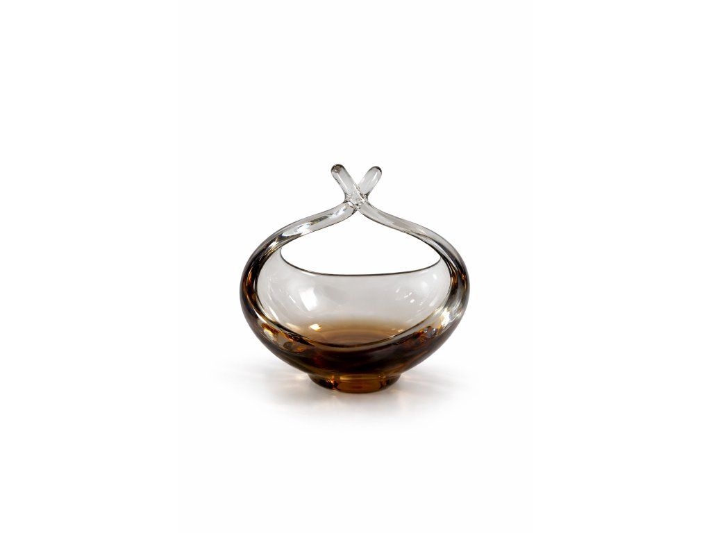 Košík z hutního skla, Pavel Juda, sklárna Škrdlovice. Výška 18 cm, šířka 16 cm. 100% TOP sběratelský stav.