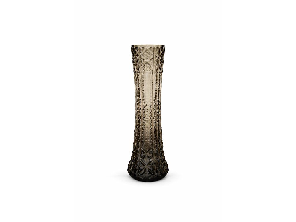 Krásná váza z lisovaného skla v kouřové variantě z produkce sklárny Crystalex Nový Bor, 60. léta 20. století. Výška 27 cm. Top stav.