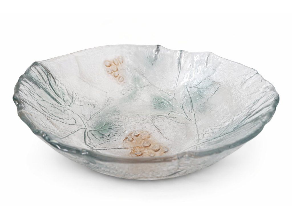 Krásná mísa z lisovaného skla s florálním motivem dle autorského návrhu Václava Zajíce, skliárna Libochovice, r. 1992. Výška 10 cm, průměr 30 cm. Top stav.
