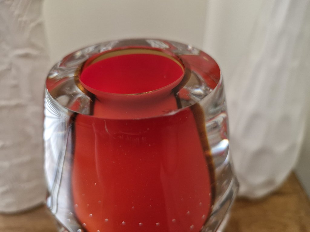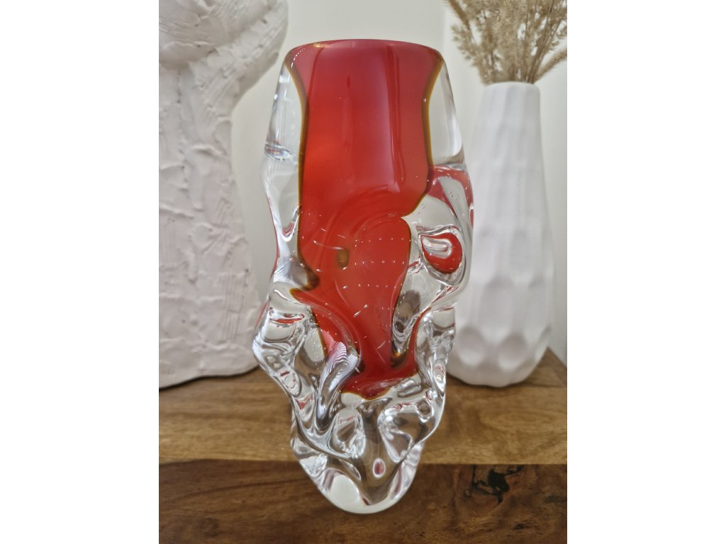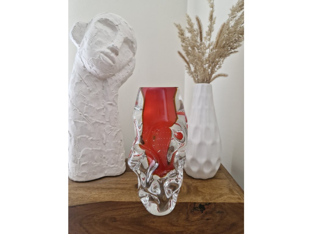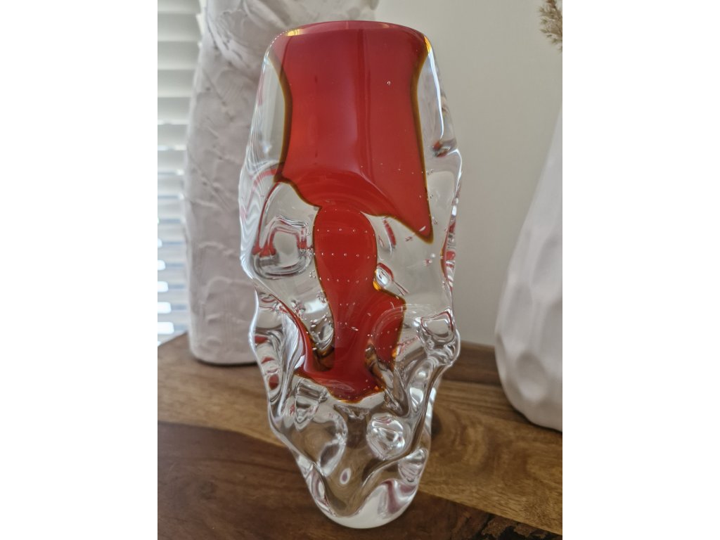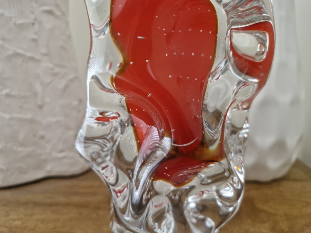 Nádherná masivní váza z hutního skla s dekorem řízených bublinek z produkce sklárny Art Glass PRINC, Žďár nad Sázavou. Výška 23 cm. Na horní hraně jeden mikro malinký oťuk.