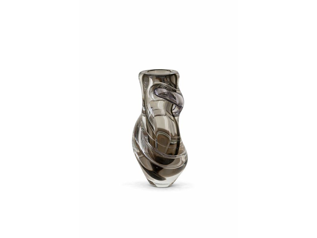 Krásná masivní váza z hutního skla ve tvaru vrtule - kombinace kouřové a jemně fialové skloviny. Z produkce sklárny Art Glass PRINC, Žďár nad Sázavou. Výška 22 cm. Top stav.