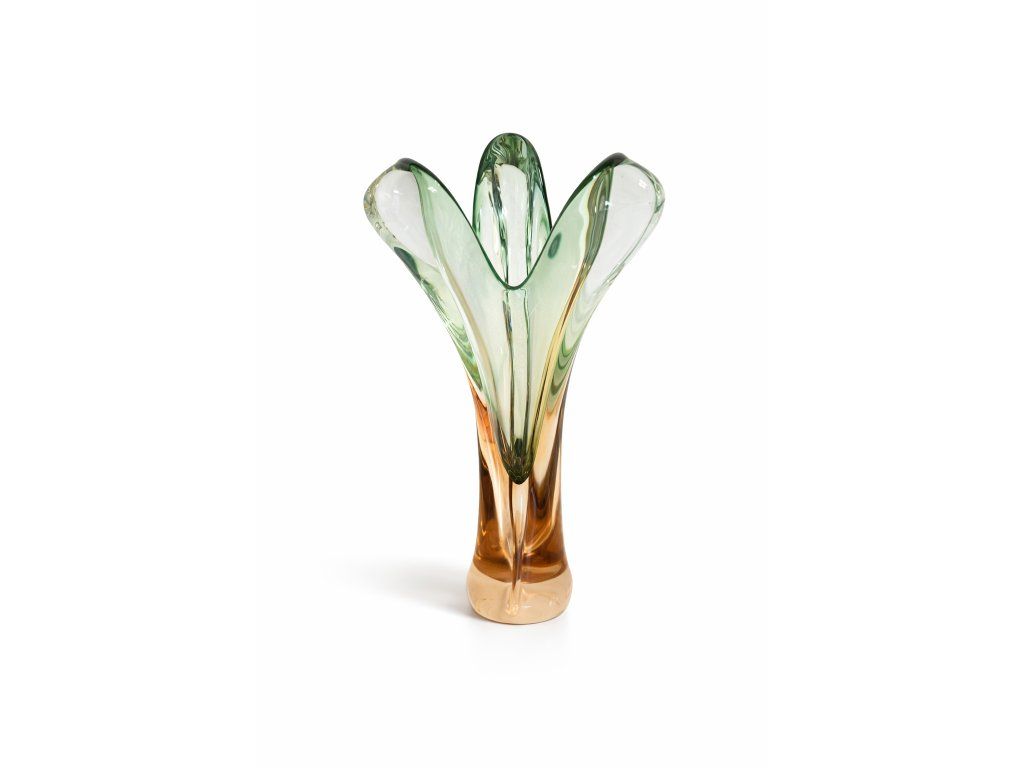 Luxusní váza z hutního skla v krásné, jemné barevné kombinaci. Autorský návrh Josef Hospodka, sklárna Chřibská, 60. léta 20. století. Výška 28 cm. 100% TOP stav.
