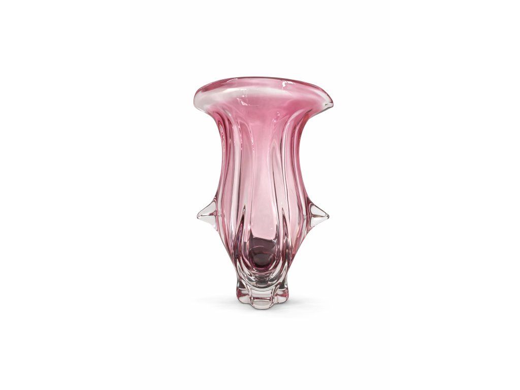 Krásná růžová váza z hutního skla dle autorského návrhu Josefa Hospodky, sklárna Chřibská, 60. léta 20. století. Výška 27 cm. Top stav.