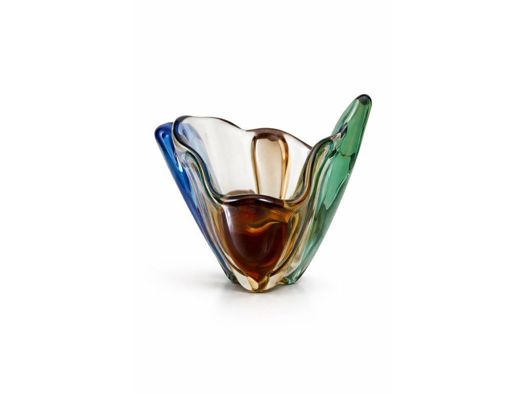 Krásná váza z hutního skla - kolekce RHAPSODY dle autorského návrhu Františka Zemka, sklárna Mstišov, r. 1958. Výška 18 cm. 100% TOP stav.