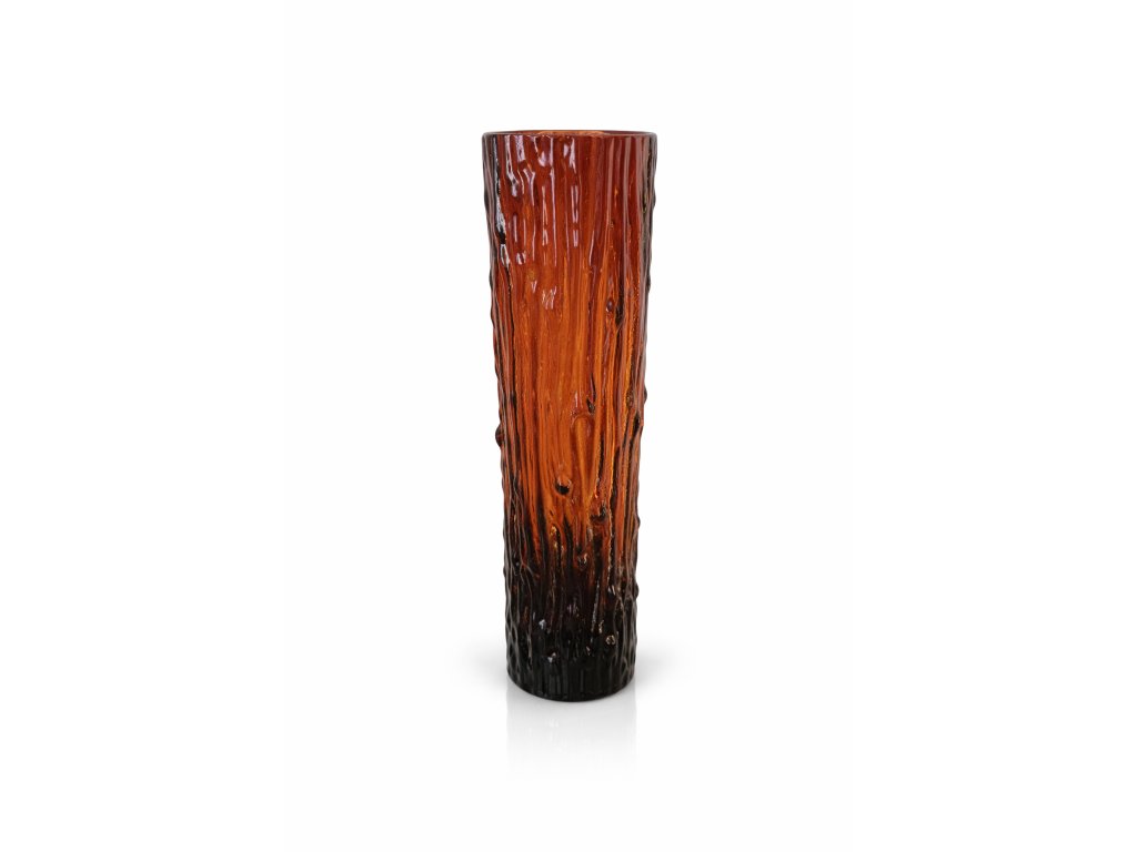 Krásná váza z lisovaného skla - tzv. sukáč v nádherné tmavě cihlové barvě, návrh Václav Hanuš, sklárna Desná, 60. léta 20. století. Výška 24 cm. 100% TOP stav.