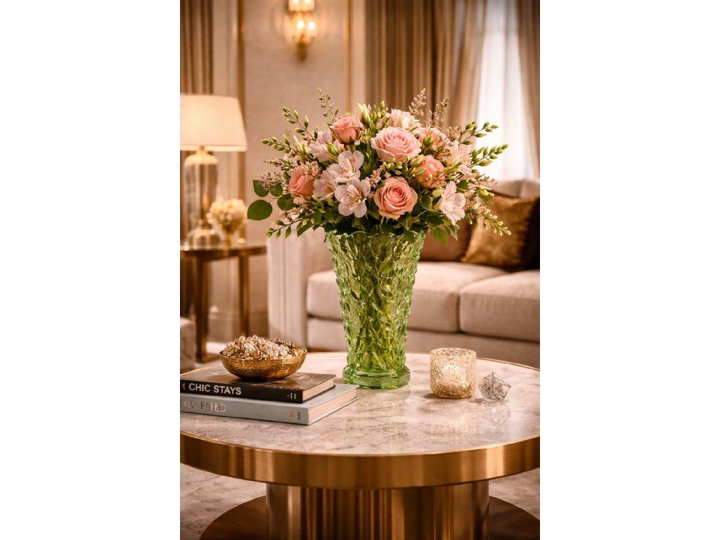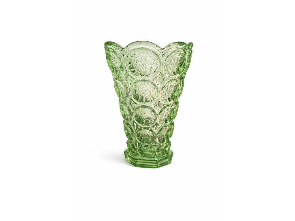 Krásná váza z uranového lisovaného skla dle návrhu Rudlfa Schrotera, sklárna Rudolfova huť. Výška 21 cm. 100% TOP stav.