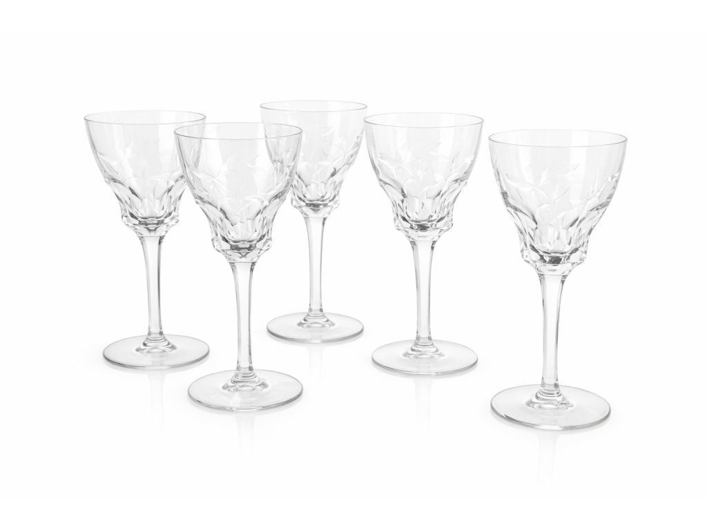 Sada 5 krásných skleniček z broušeného skla dle autorského návrhu Jana Gabrhela, sklárna CHlum u Třeboně, 60. léta 20. století. Výška 16 cm. Všechny jsou v 100% TOP stavu.