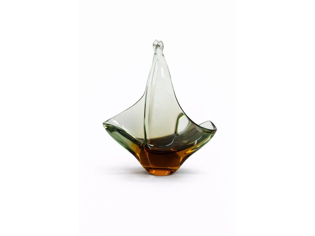 Krásný košík z hutního skla dle autorského návrhu Emanuela Beránka, sklárna Škrdlovice, r. 1959. Výška 19 cm. Top stav.