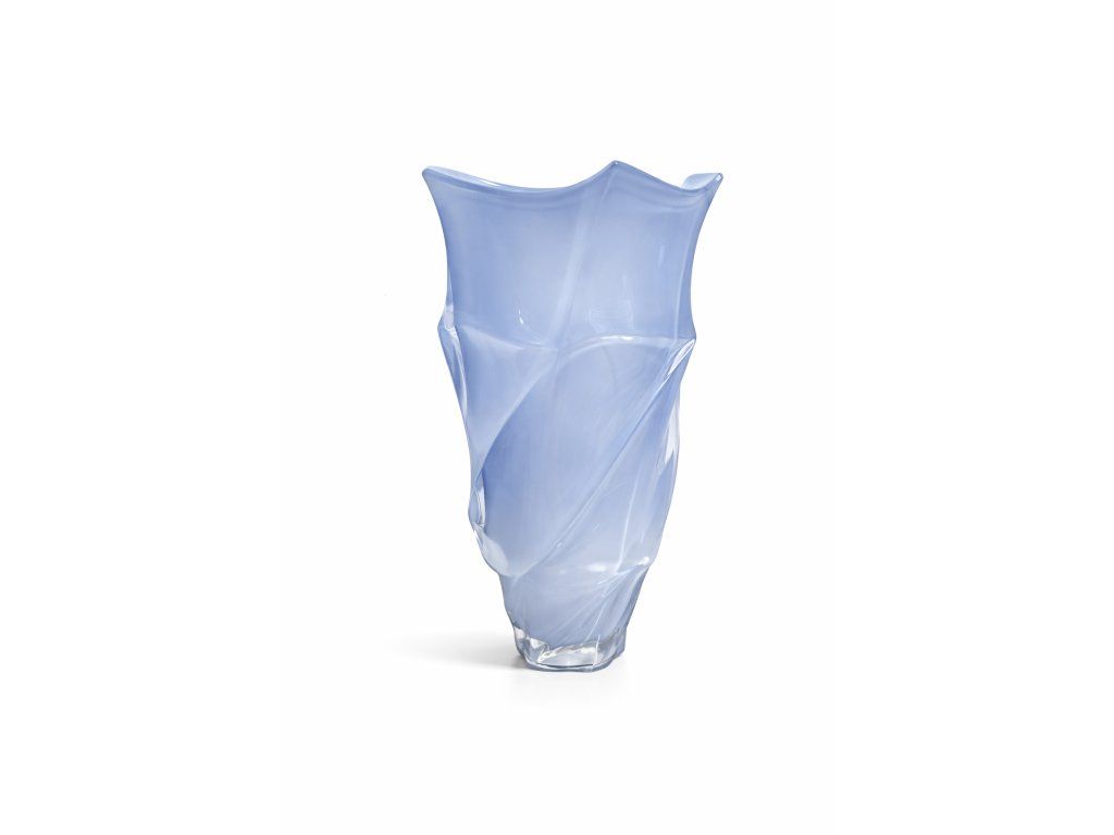 Charakteristické dynamické linie, inspirované tanečními pohyby flamenca, vnášejí do prostoru rytmus a ladnost. Luxusní růžový částečně matovaný odstín dodává váze energii a zároveň nádech exkluzivity. Tento výjimečný barevný akcent (spodní část je průhledná světle modrá a plynule prochází do matované modré) vznikl díky dovednosti českých dekoratérů, kteří kolekci vtiskli nezaměnitelný rukopis. Výška 30 cm. Top stav nového zboží.