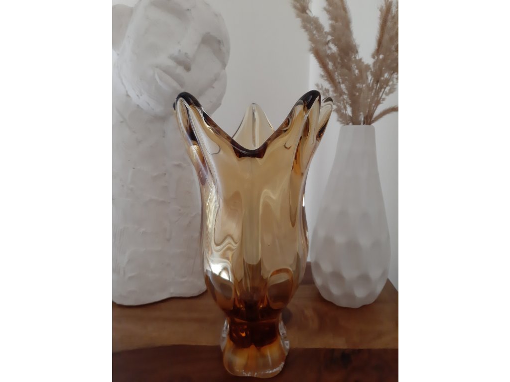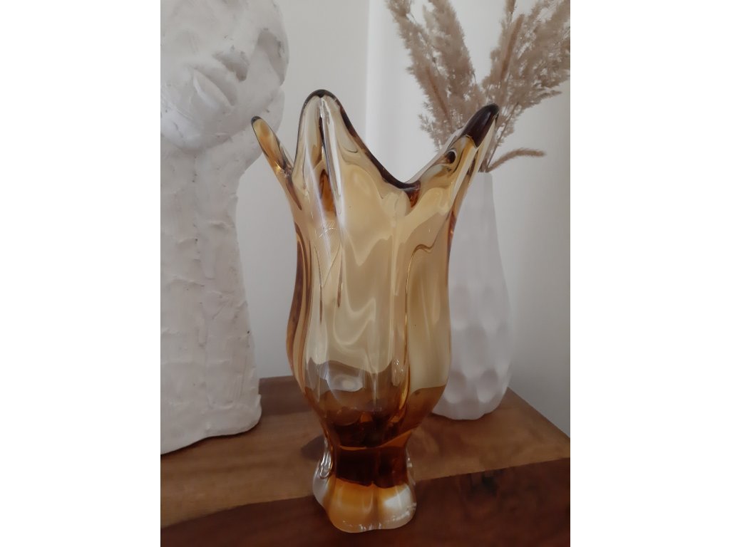Luxusní váza z hutního skla v nádherné béžové barvě z produkce sklárny Egermann Nový Bor, 2. pol. 20. století. Výška 27 cm. 100% TOP luxusní stav. Jedná se o vázu přímo ze skladů Egermann, tudíž váza nikdy nebyla na prodej a nikdo ji neužíval, je ve stavu nového zboží.