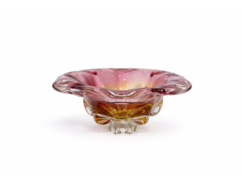 Krásná velká masivní mísa z hutního skla v nádherné barevné kombinaci dle autorského návrhu Josefa Hospodky, sklárna Chřibská, 60. léta 20. století. Výška 14 cm, průměr 27 cm. 100% TOP stav.
