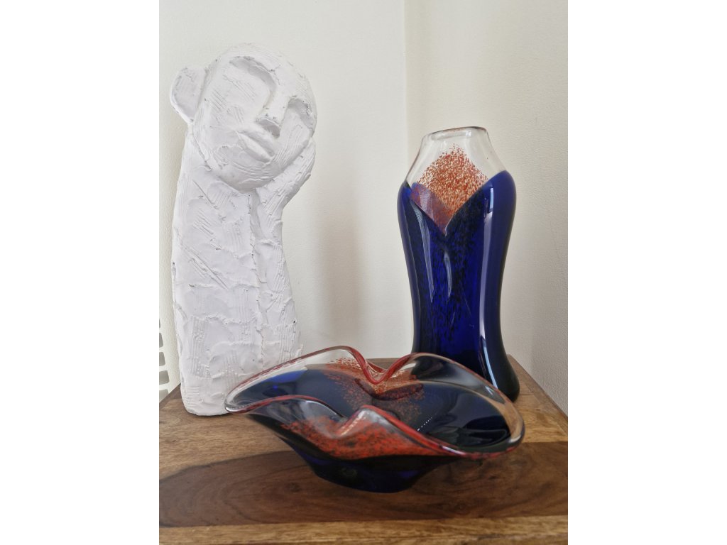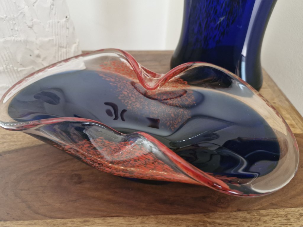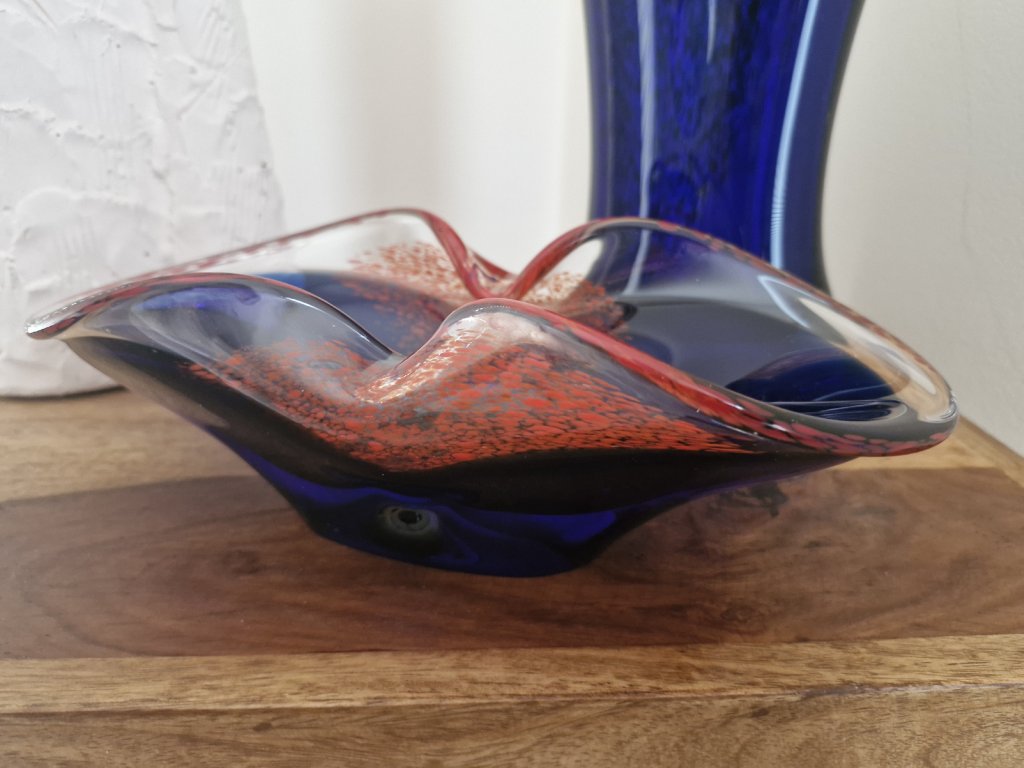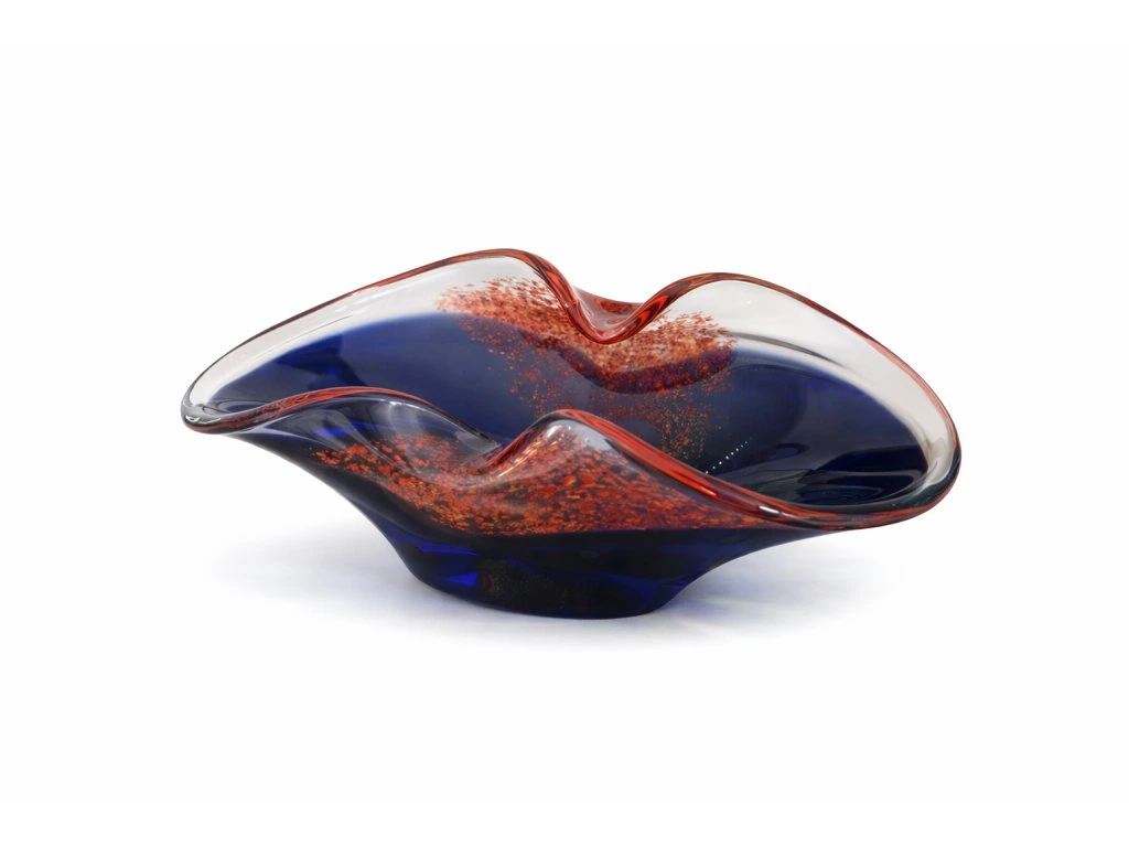 Nádherná masivní mísa z hutního skla z pozdější produkce sklárny ŽBS. Výška 9 cm, délka 25 cm. Top stav. V naší nabídce rovněž nádherná váza ze stejné série.