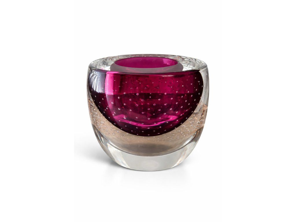 Nádherná masivní miska s rubínovým jádrem a dekorem řízených bublinek z produkce sklárny Art Glass PRINC, Žďár nad Sázavou. Výška 11 cm. Top stav.