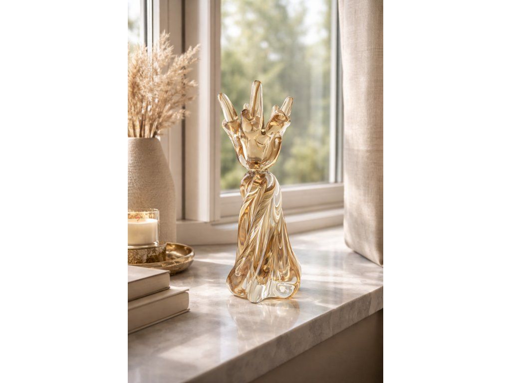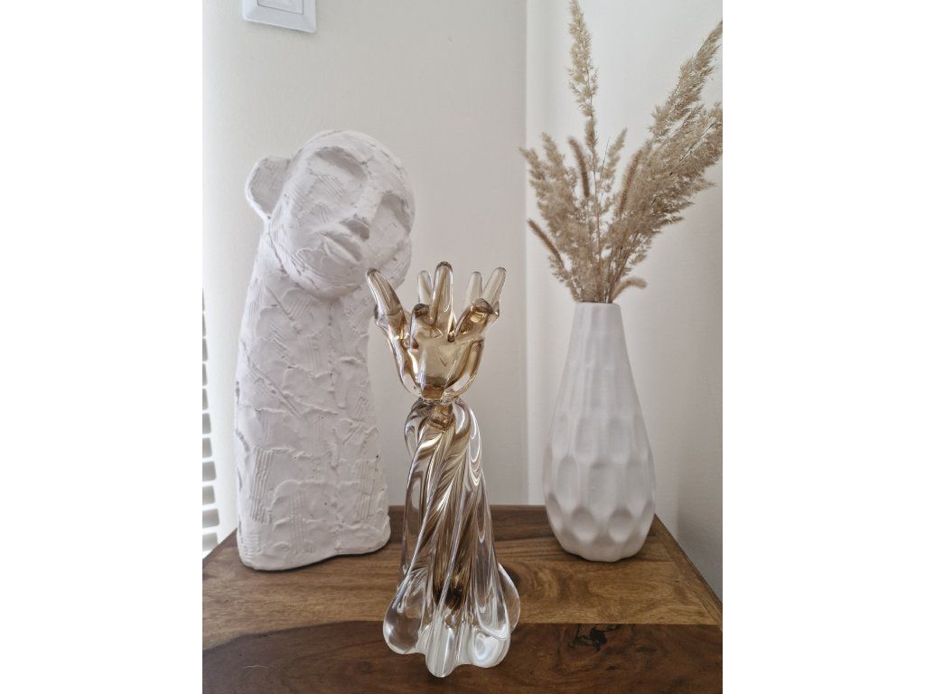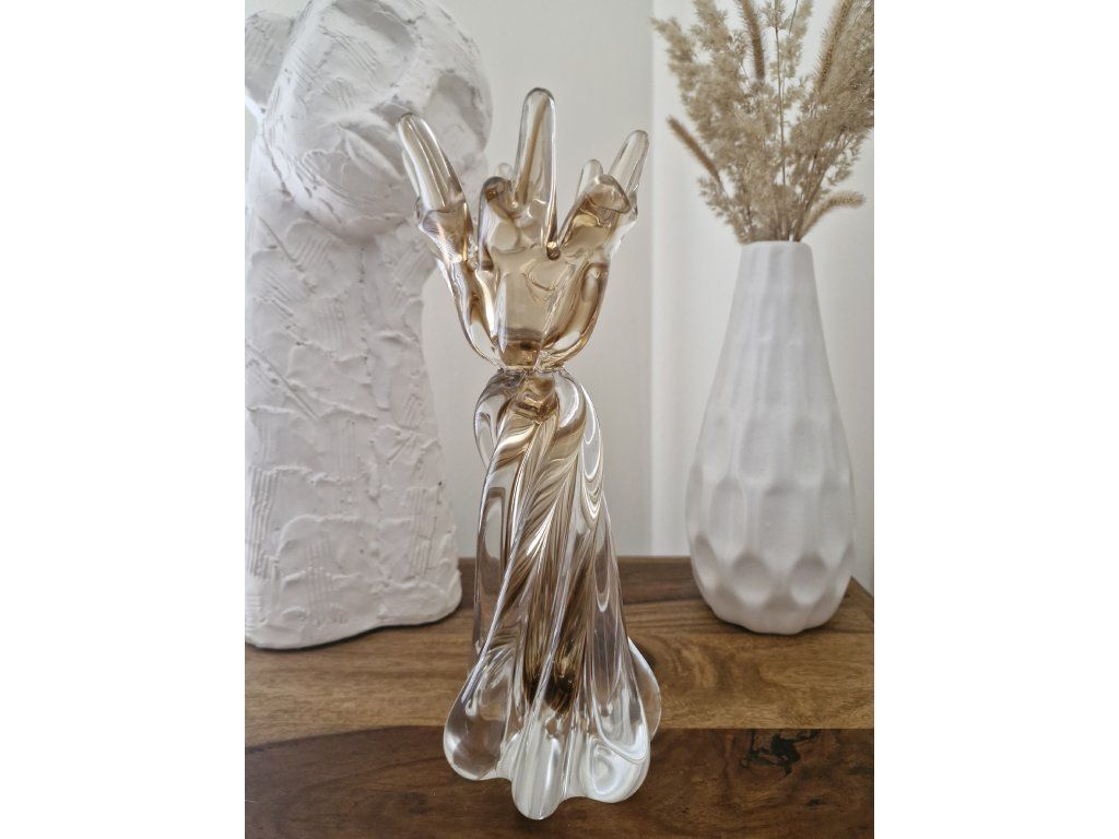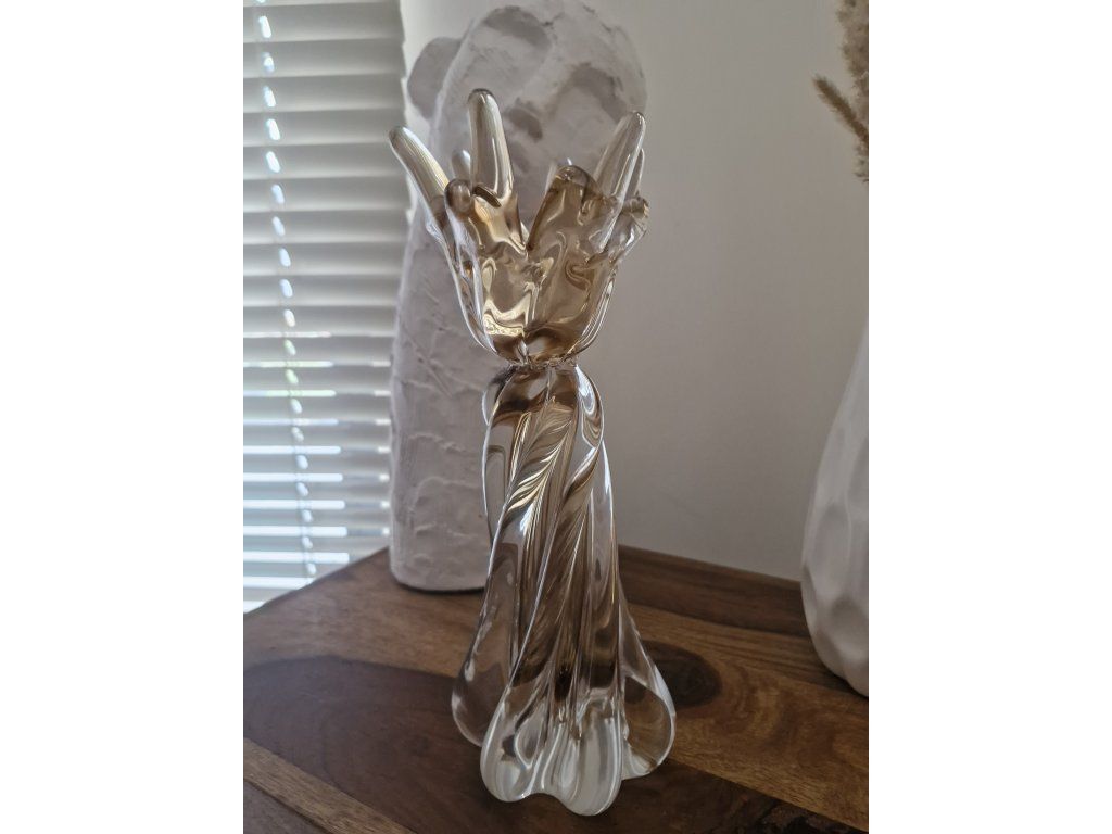 Luxusní svícen z hutního skla v krásné barevné kombinaci. Z produkce sklárny Chřibská, 2. pol. 20. století. Výška 26 cm. Top stav.