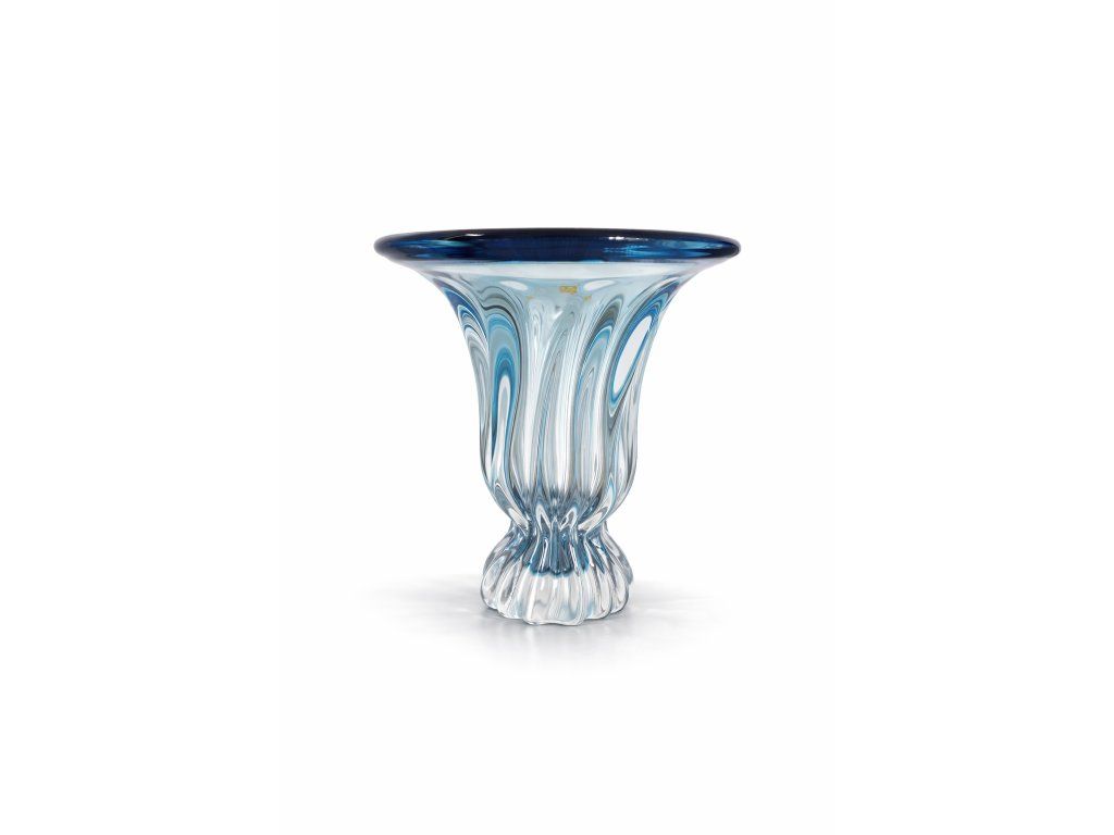 Nádherná masivní tyrkysová váza z hutního skla z produkce sklárny Egermann Nový Bor, 90. léta 20. století. Výška 27 cm. S původní nálepkou sklárny a značením na podstavě. Top stav nového zboží. Ideální na velké kytky.