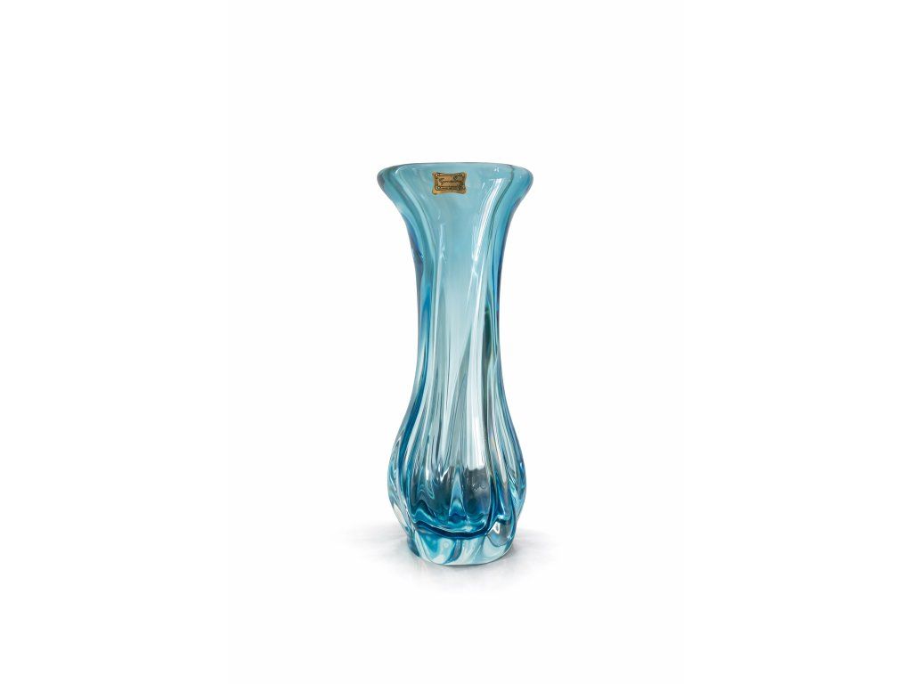 Nádherná masivní váza z hutního skla v parádní tyrkysové barvě z produkce sklárny Egermann Nový Bor, 90. léta 20. století. Výška 32 cm. S původní nálepkou sklárny a značením na podstavě. Top stav nového zboží. Ideální na velké kytky.