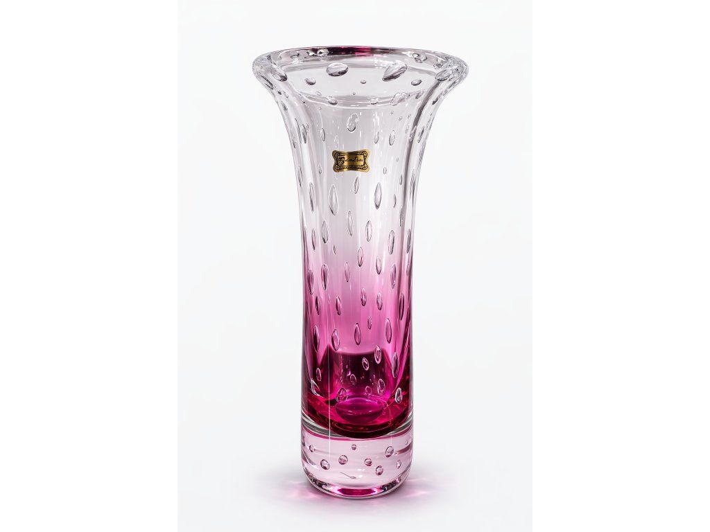 Nádherná masivní váza z hutního skla s dekorem řízených bublinek z produkce sklárny Egermann Nový Bor, 90. léta 20. století. Výška 29 cm. S původní nálepkou sklárny a značením na podstavě. Top stav nového zboží. Ideální na velké kytky.