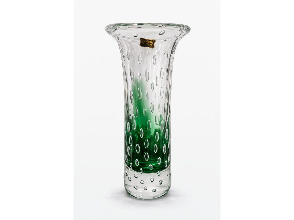 Nádherná masivní váza z hutního skla s dekorem řízených bublinek z produkce sklárny Egermann Nový Bor, 90. léta 20. století. Výška 31 cm. S původní nálepkou sklárny a značením na podstavě. Top stav nového zboží. Ideální na velké kytky.