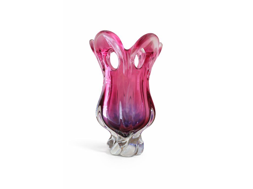 Luxusní váza z hutního skla v nádherné barevné kombinaci. Z produkce sklárny Egermann, Nový Bor, 2. pol. 20. století. Výška 27 cm. 100% TOP stav.