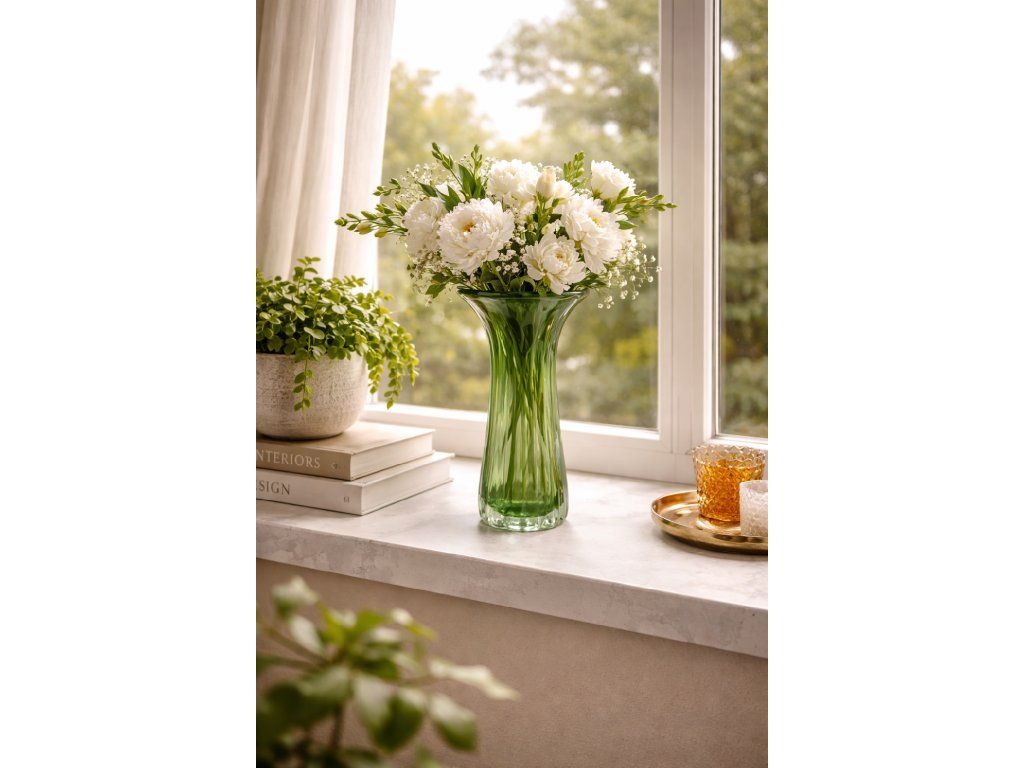 Luxusní váza z hutního skla v krásné zelené barvě z produkce sklárny Egermann Nový Bor. Výška 34 cm. 100% TOP stav.