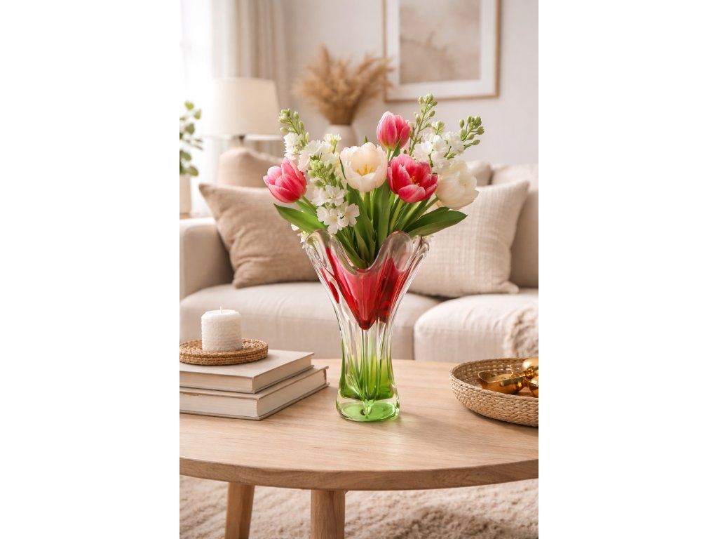 Nádherná váza z hutního skla v krásné barevné kombinaci. Autor návrhu Josef Hospodka, sklárna Chřibská, 60. léta 20. století. Výška 28 cm. Top stav.